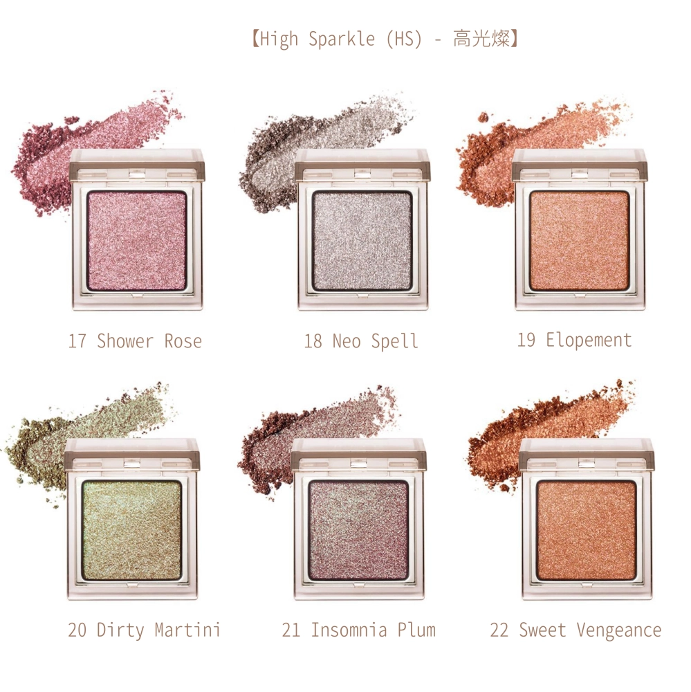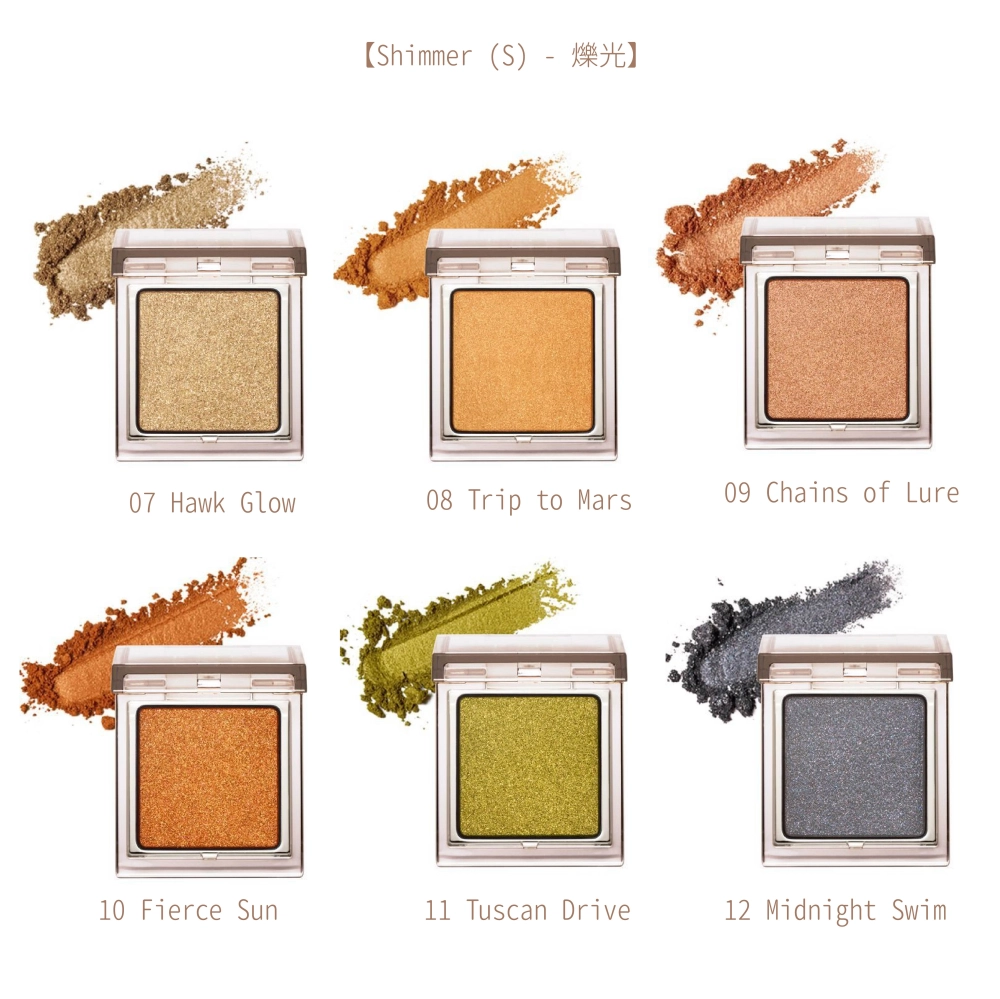 大顆粒的珠光閃耀濕潤般亮澤的光燦質感。RMK初次採用結合水潤感和透明感兼具的清透凝膠,賦予眼部立體感,實現透亮的光燦效果。高光燦的珠光能完美密著肌膚,推薦作為最後疊擦色使用。