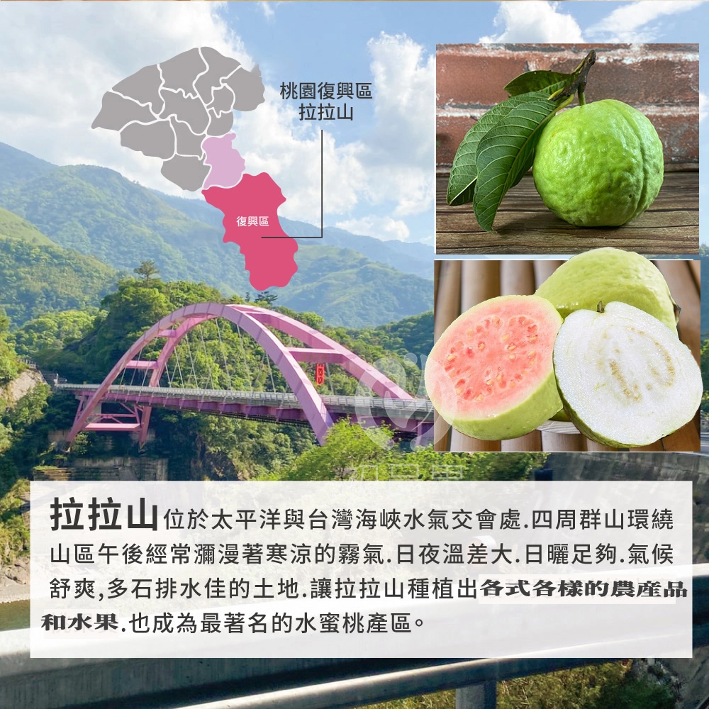 2.商品品名:拉拉山雙色蜜芭樂禮盒5斤±10%(6-10顆)