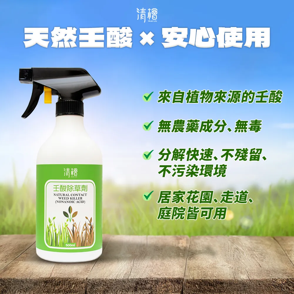 透過天然壬酸的酸性值來破壞雜草結構,以達到除草之效果,液體3–10天內自然分解、不累積於土壤或水體,達到友善環境的作用。