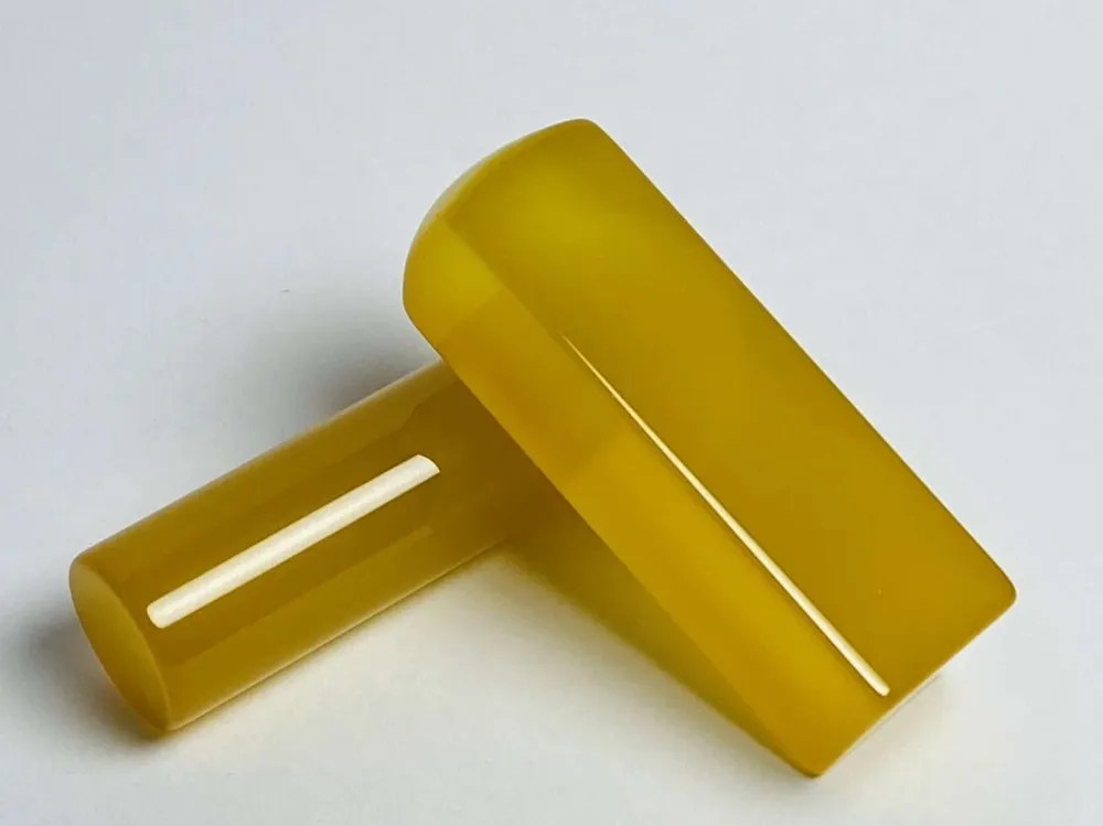 黃玉髓為特殊的礦物石英的天然材質,表面光滑;質地多變化,顏色大多為黃色,材質在色澤上會有明顯深淺的不同喔!