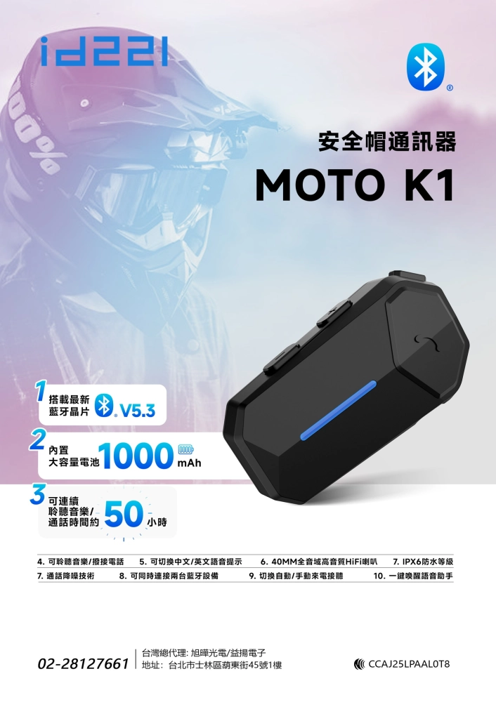 商品id221 MOTO A2S 安全帽藍芽耳機 高音質 高電量 前後對講 中英文提示 藍芽5.2