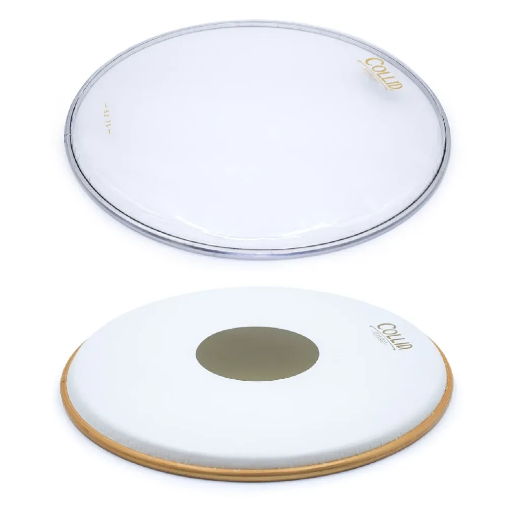 K1188-GCT9-14(14吋鼓皮/單層噴白 7.5 mil/3mil 透明弱音圈/金色集中貼/金色框)