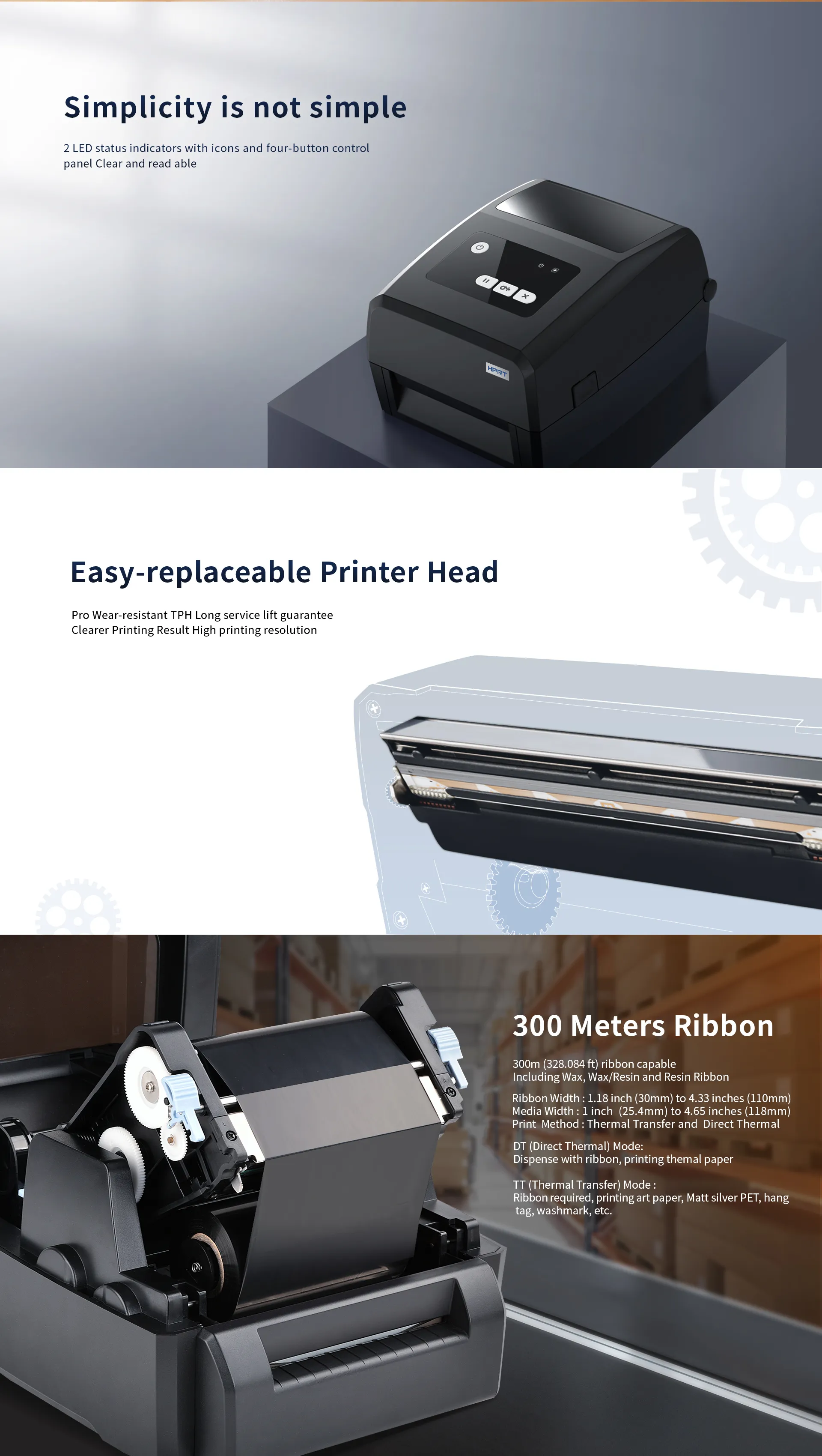 • ButtonFour control buttons: power button, pause button, feed button, cancel button