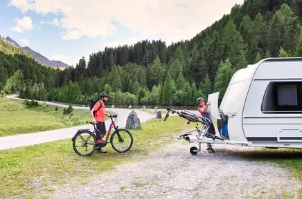 完美的自行車架可在A型車架上運送兩輛電動自行車。