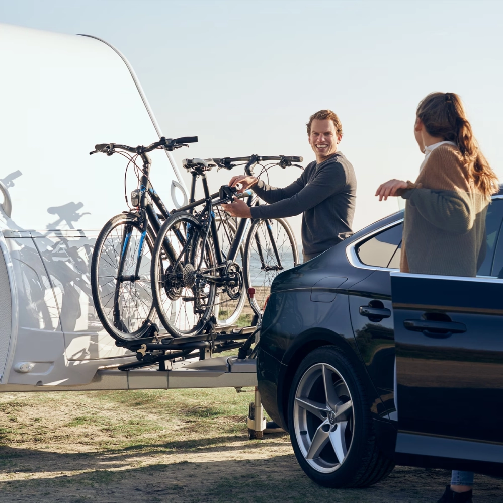 • 可拆卸式自行車臂讓您輕鬆裝載自行車,該自行車臂帶有可上鎖的 Thule AcuTight 扭力限制器旋鈕,會在達到最佳扭力值時發出「咔嗒」聲