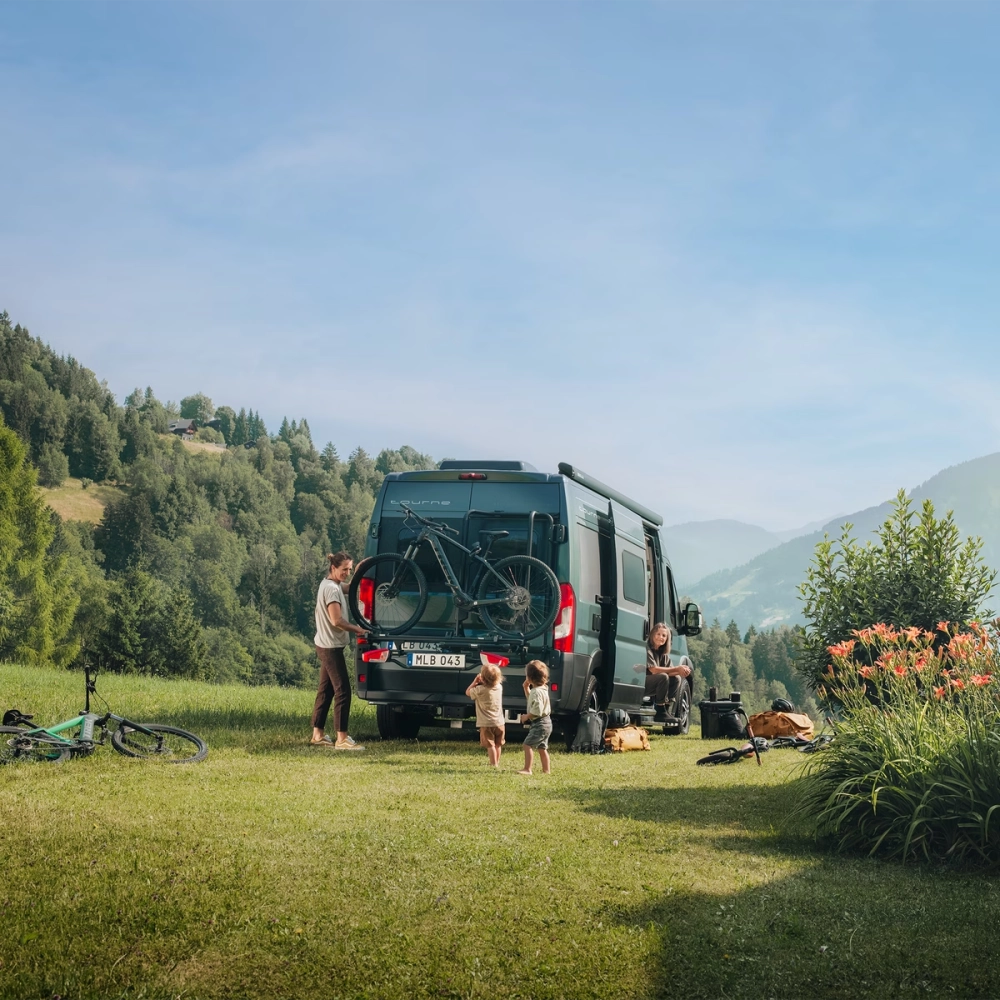 安全運輸 2 輛電動自行車,或者擴大到 3 輛最重 60 公斤的自行車 (第 3 輛自行車轉接器另售)