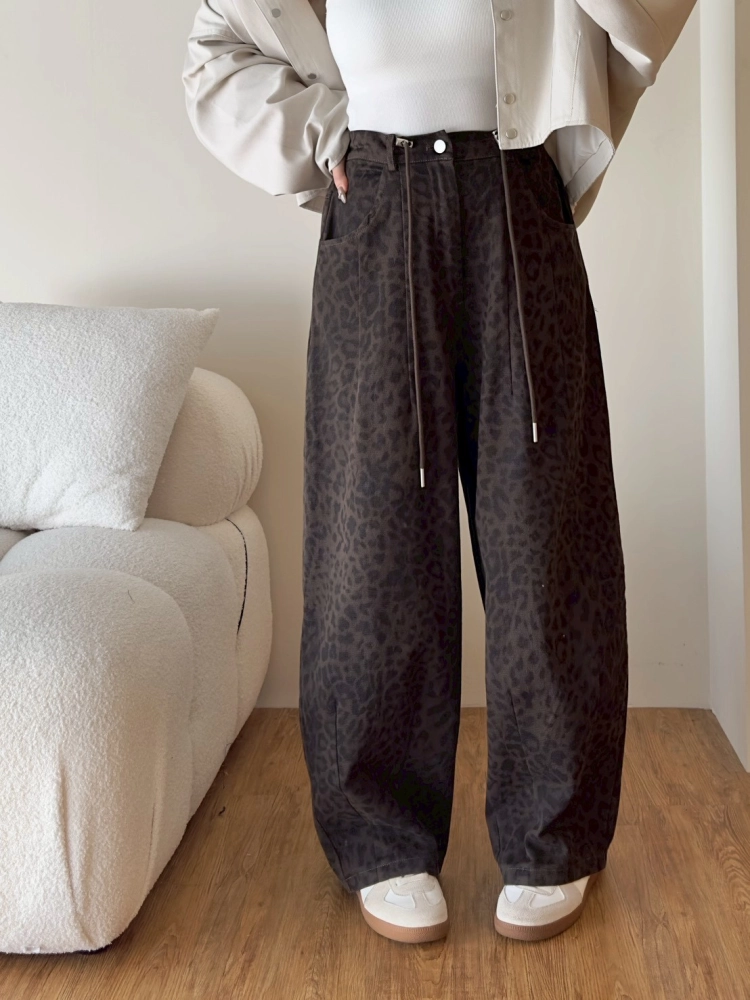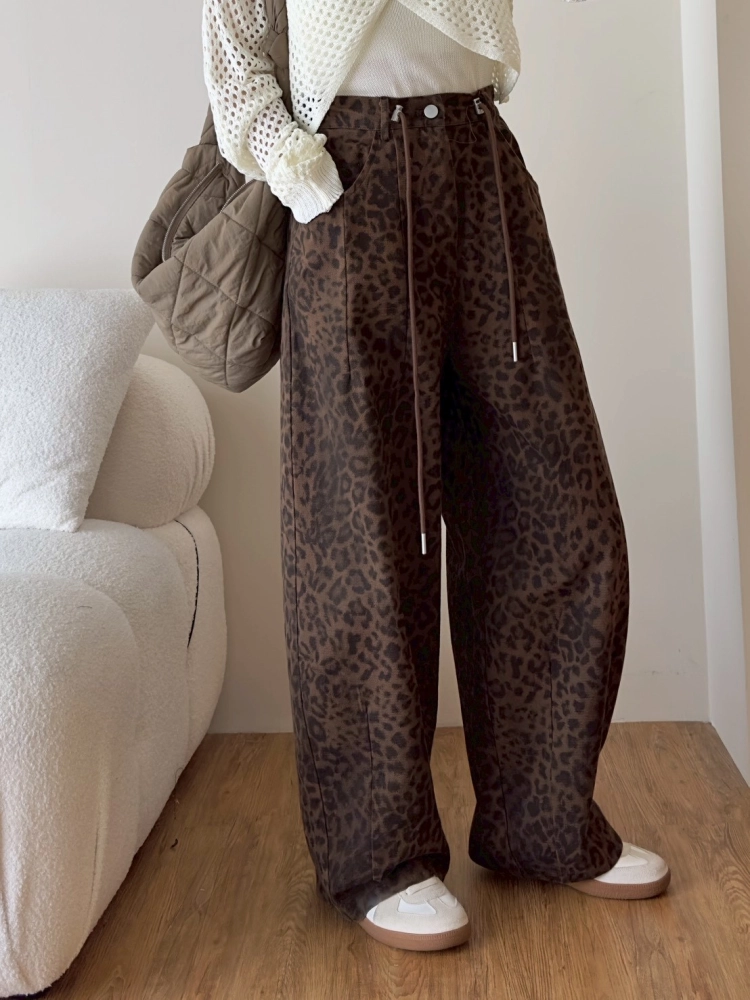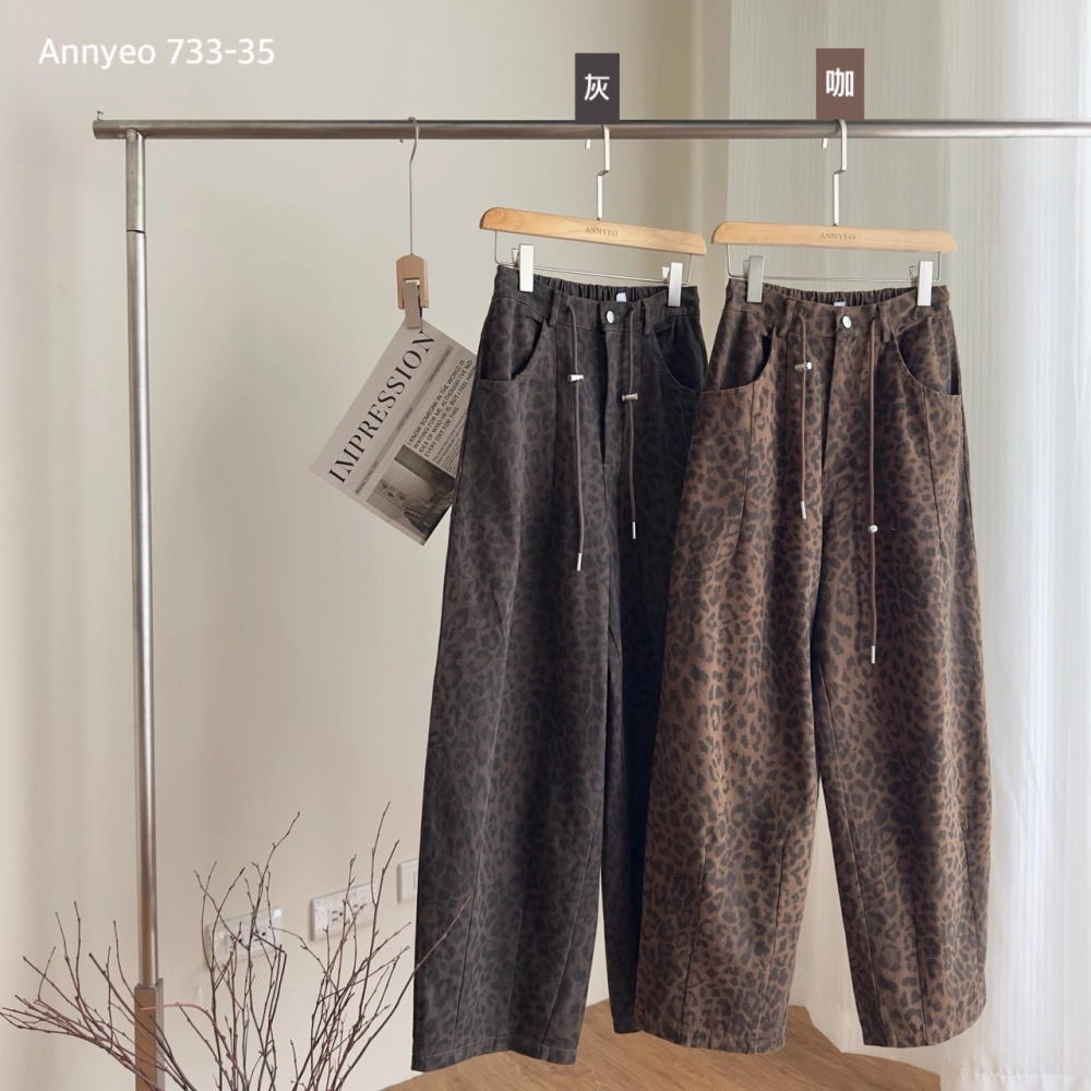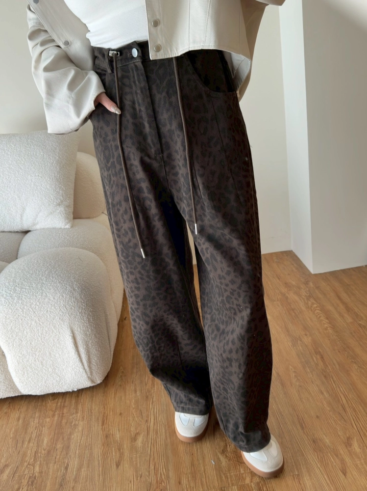 • 豹紋微寬長褲