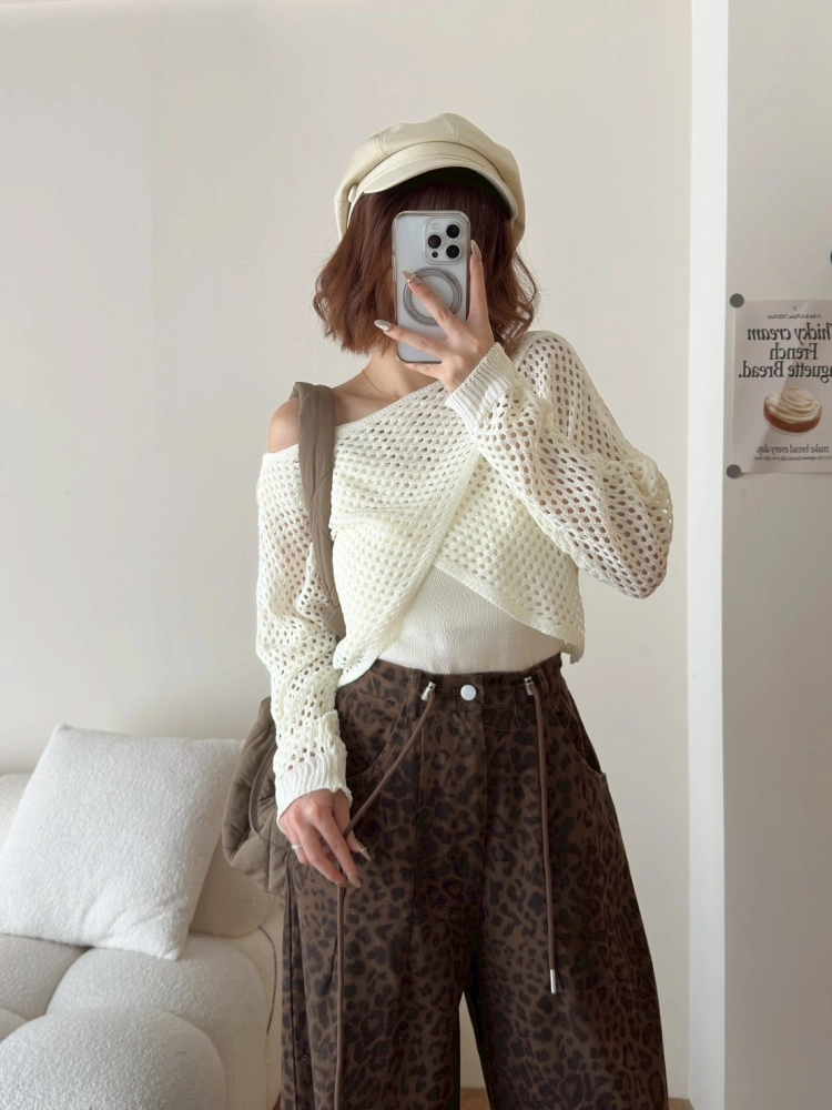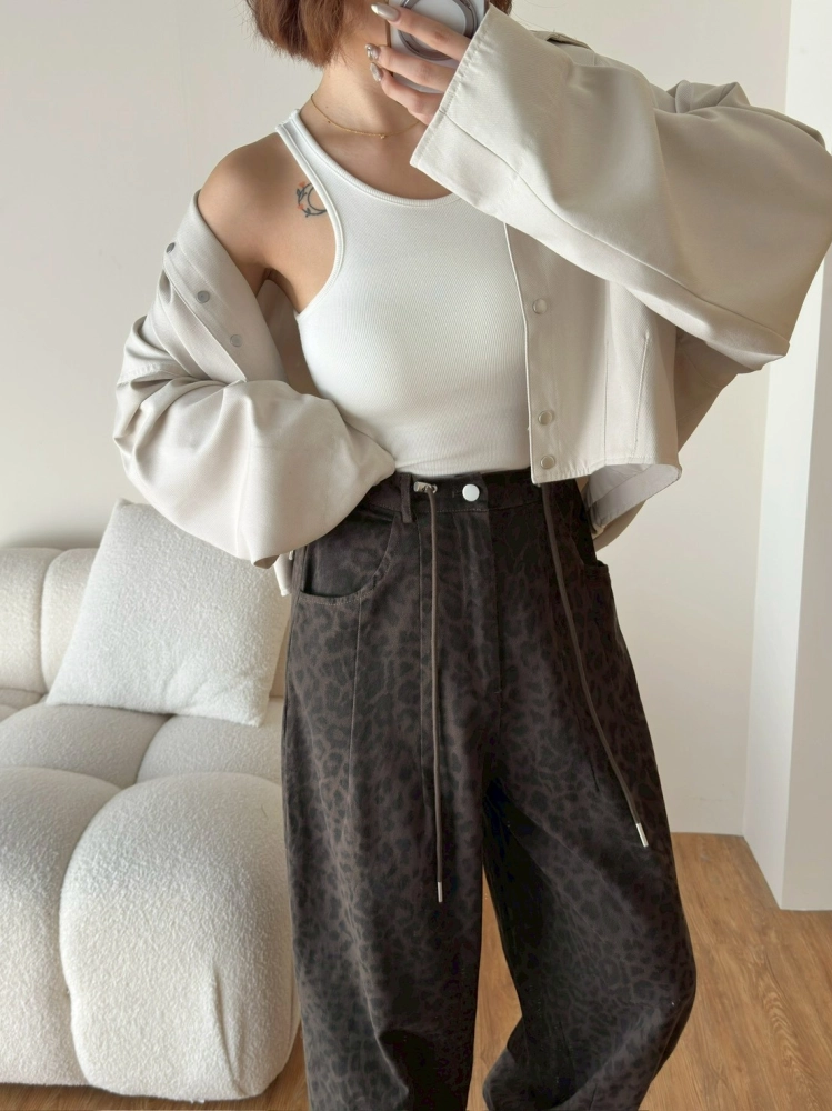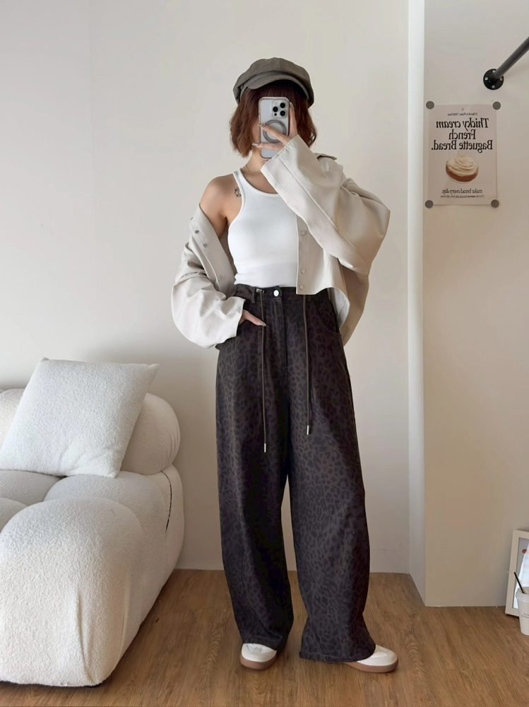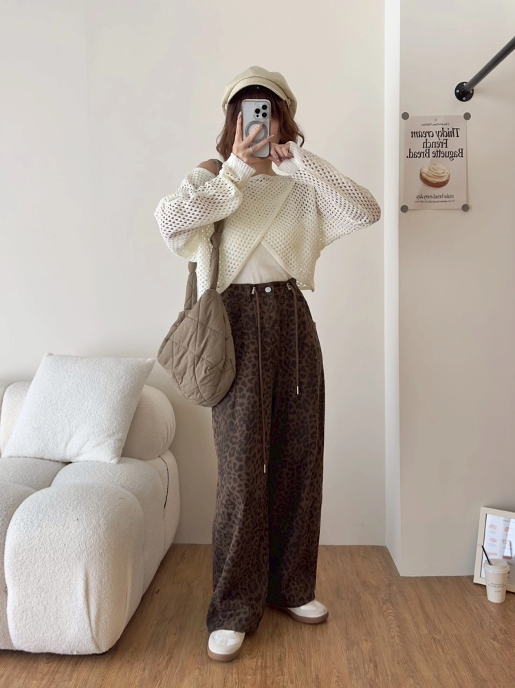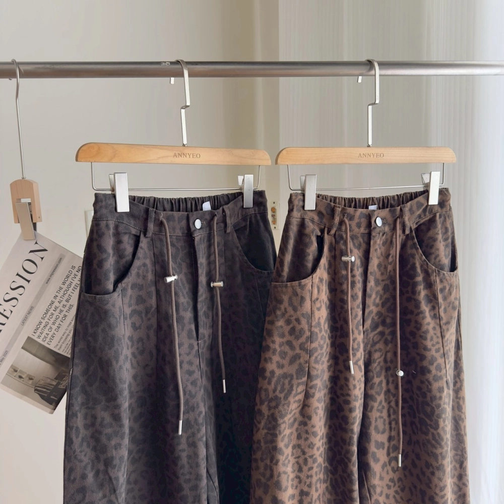 • 豹紋微寬長褲