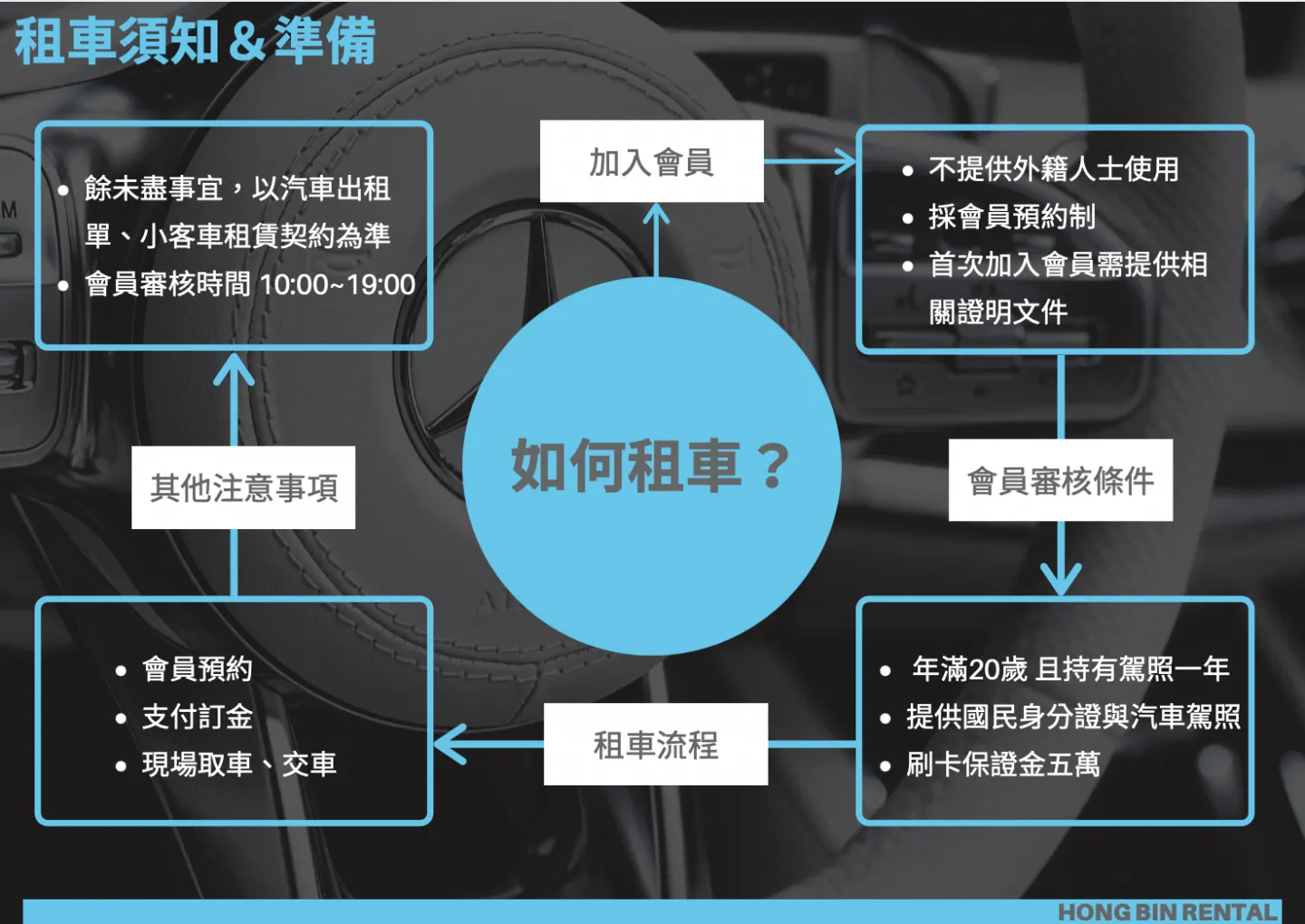 個人首次加入會員每日審核時間10:00-19:00 審核時間需一個工作天 | 企業首次加入會員每日審核時間10:00-19:00 審核時間需一個工作天 | 預約租車已加入過會員者 |