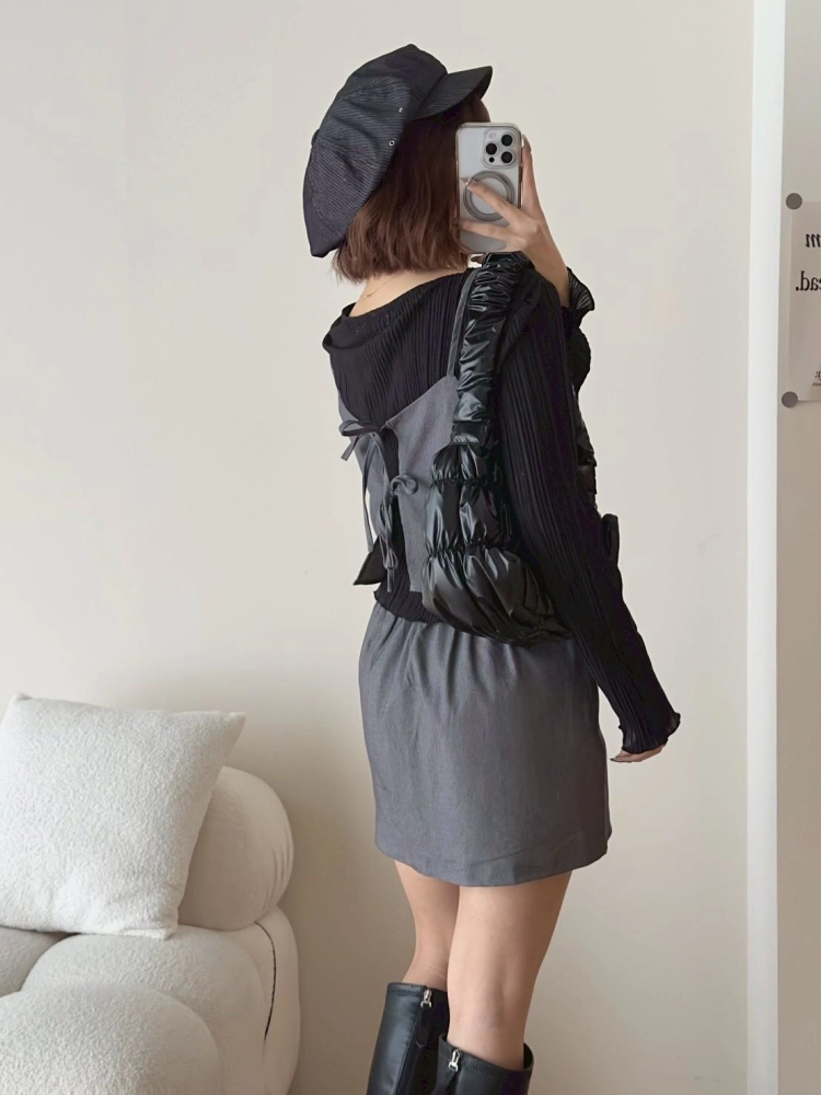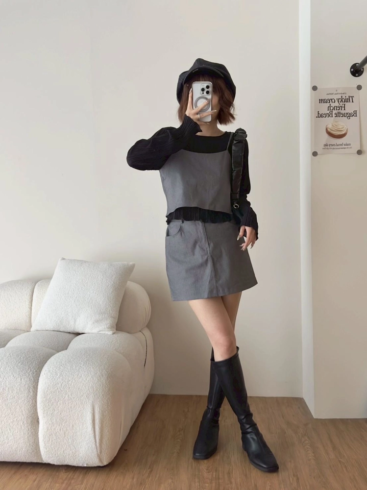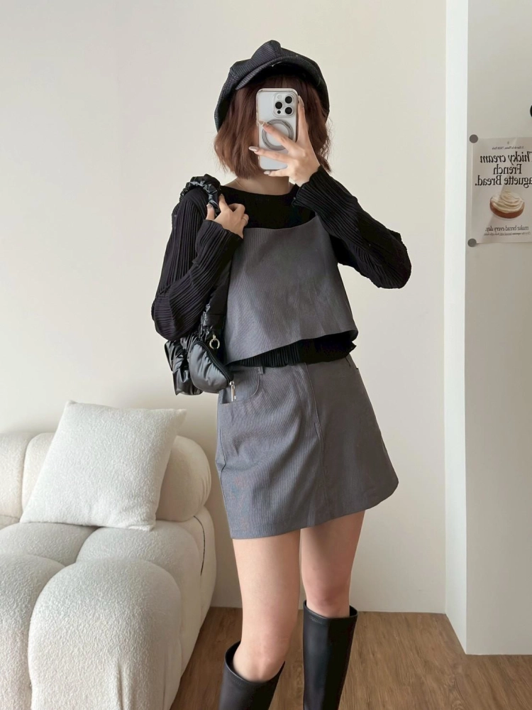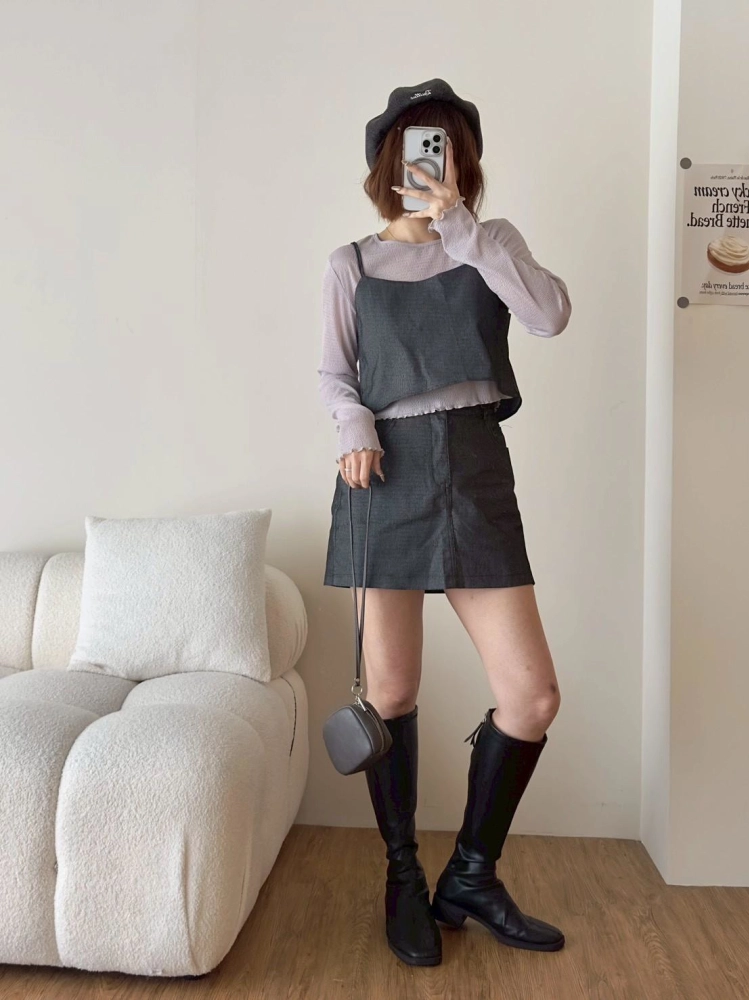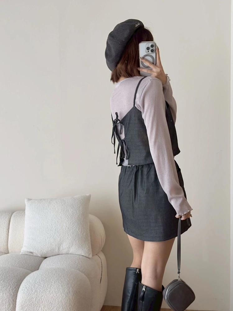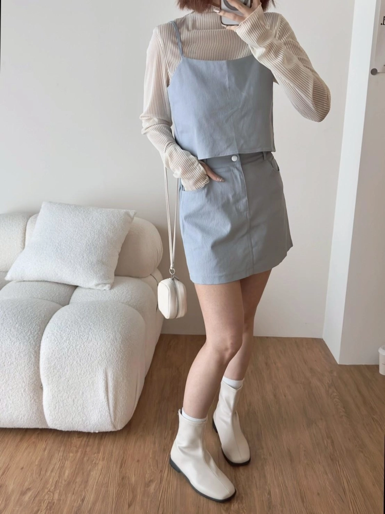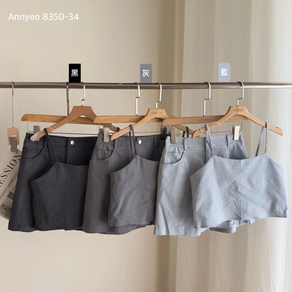 • 西裝面料細肩膀帶造型背心➕短褲裙套裝