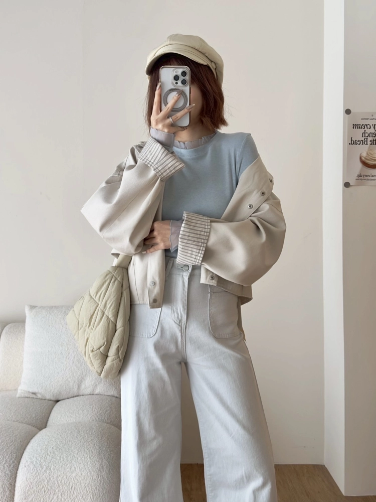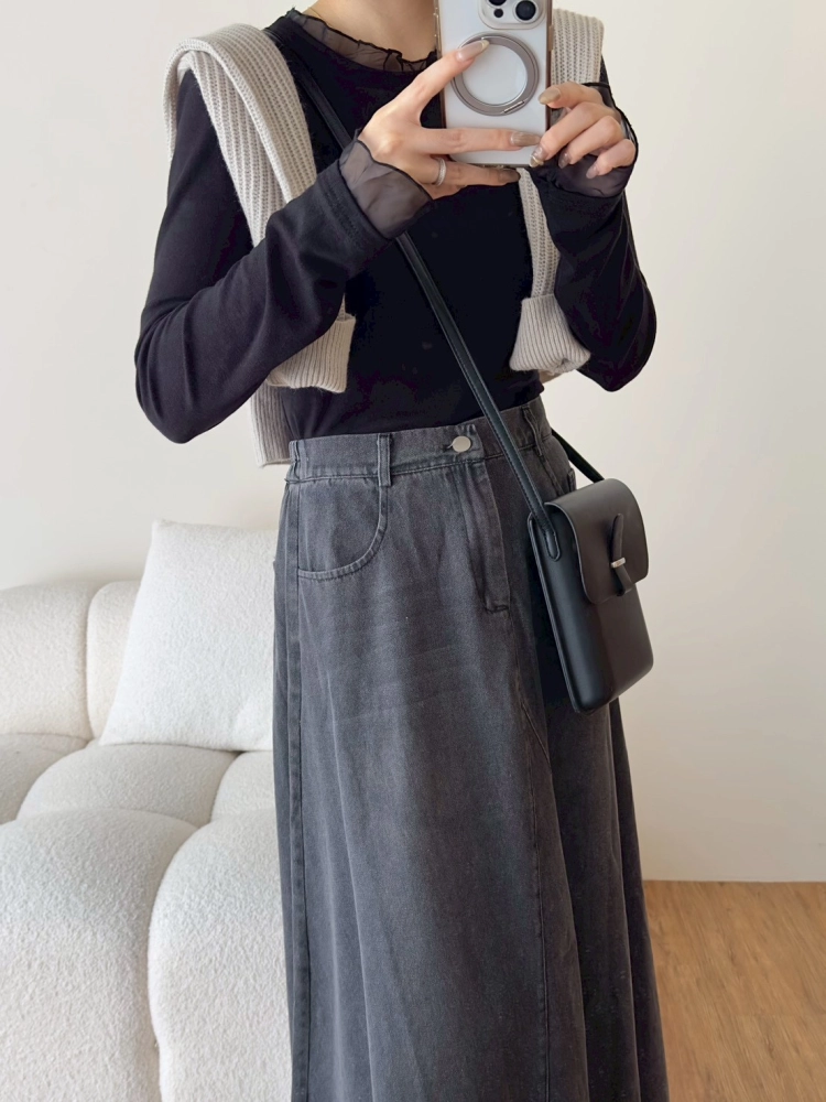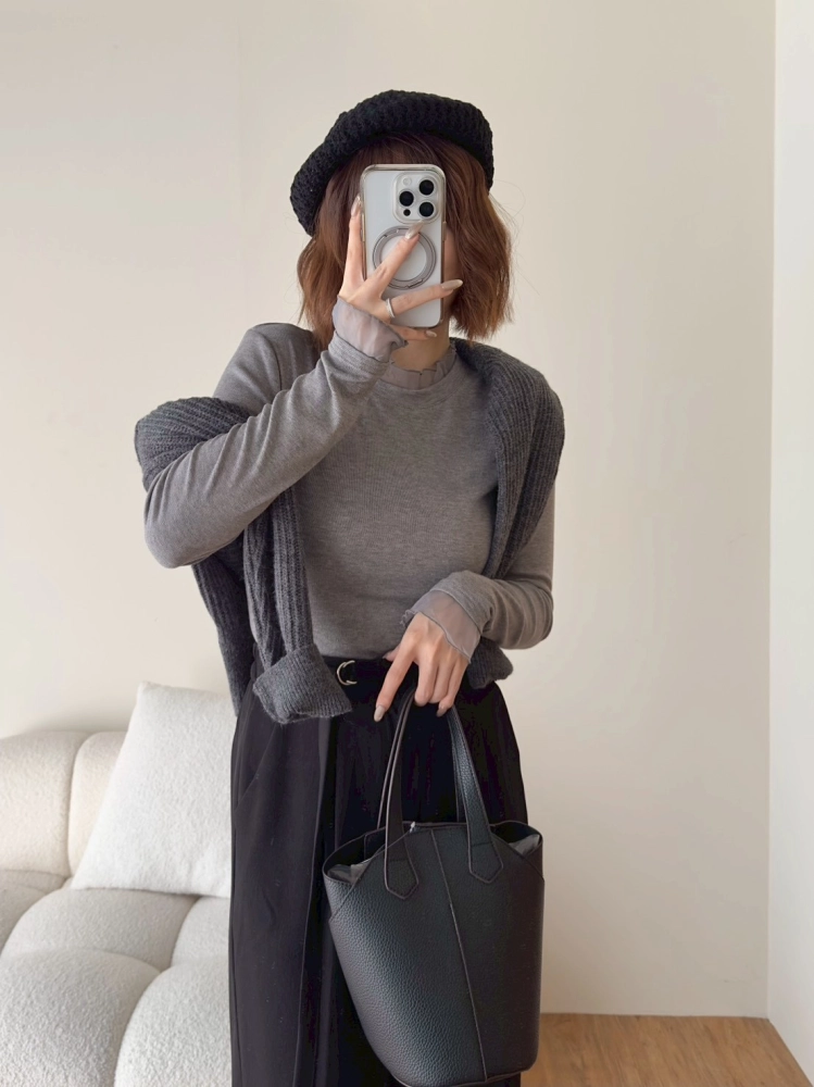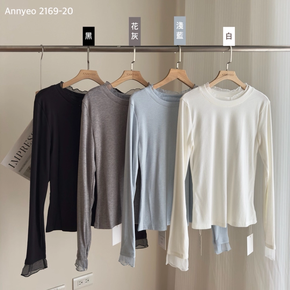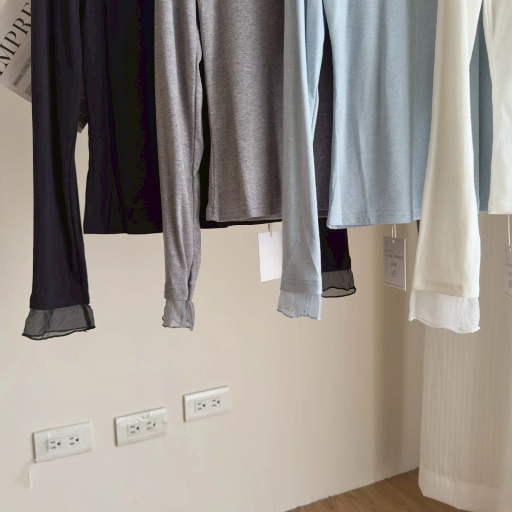 • 木耳邊雪紡長袖打底上衣
