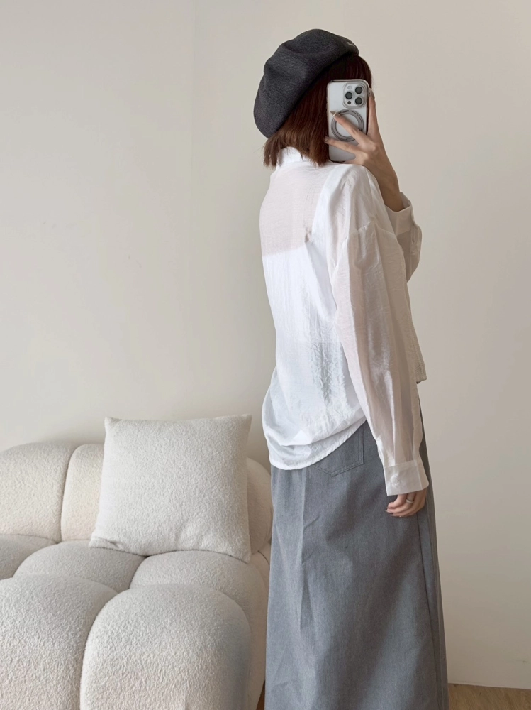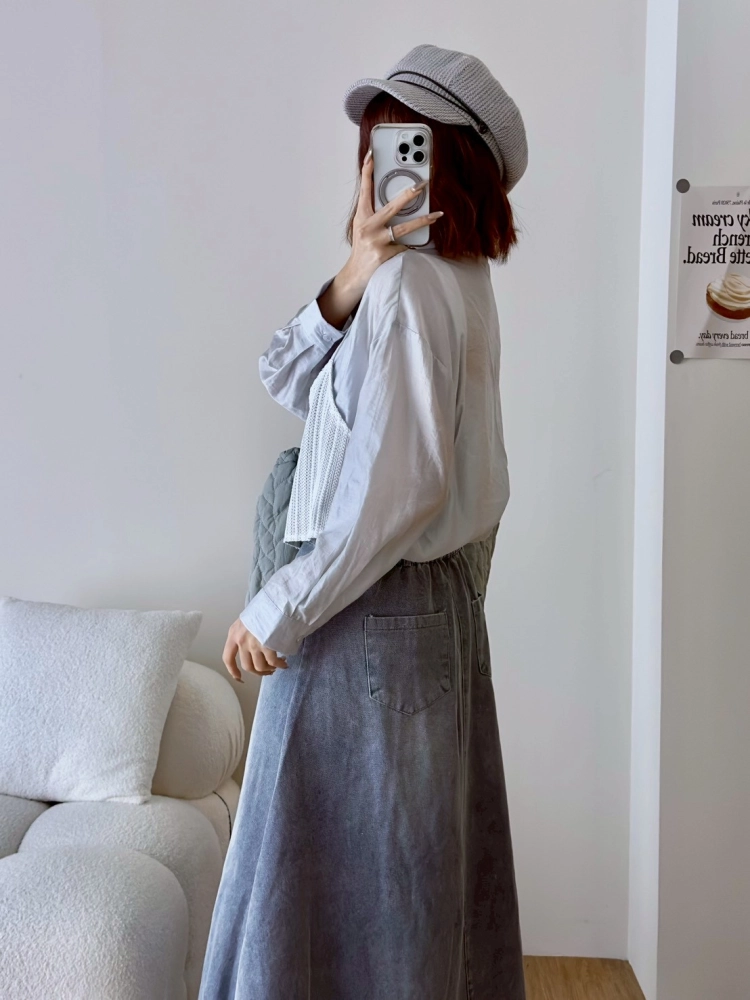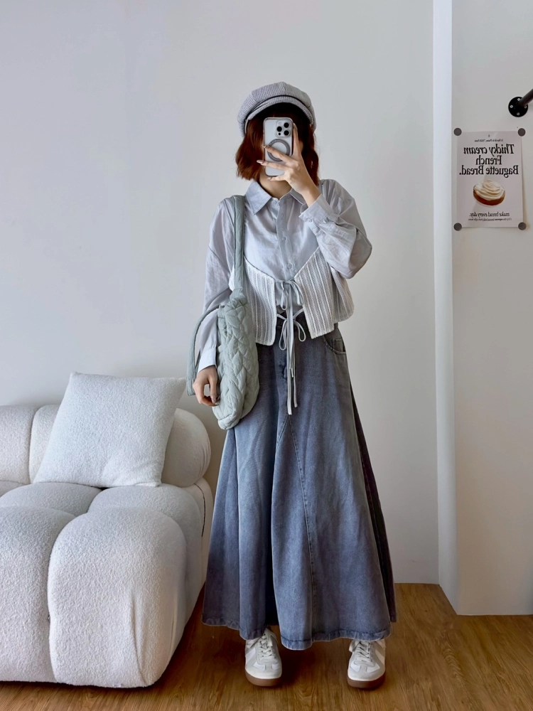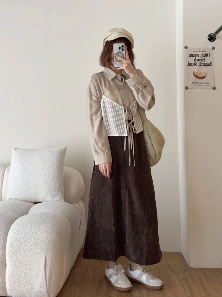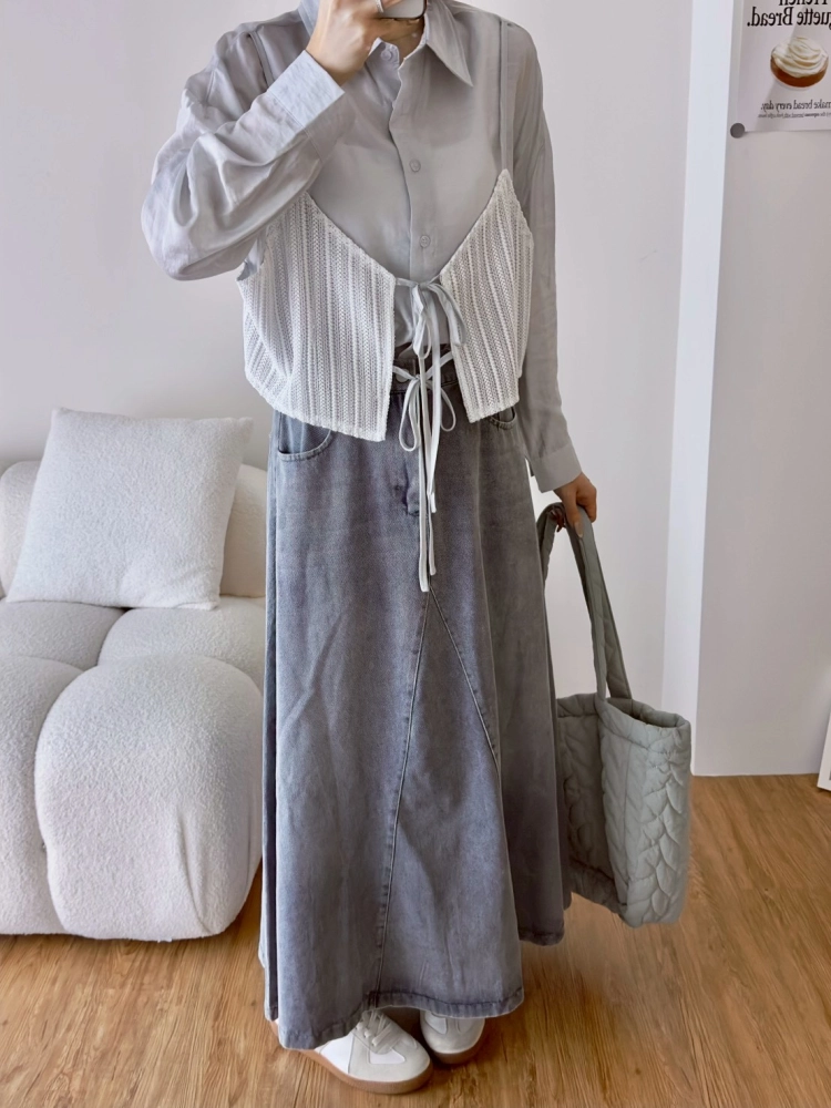 • 針織細肩綁帶假兩件襯衫