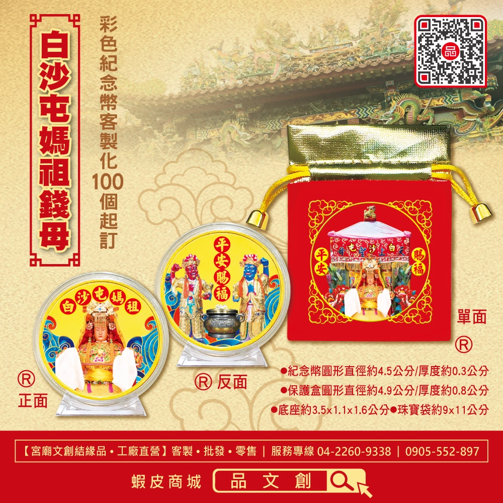 商品︳【白沙屯媽祖錢母 】★媽祖+千順將軍紀念幣 ★媽祖神轎珠寶袋