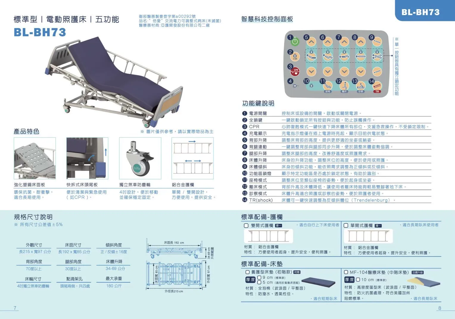 • 標準型|電動照護床|三功能