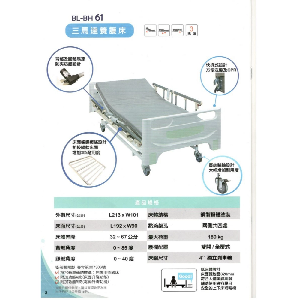 • 倍愛電動護理床(附輪)(三馬達)BL-BH61