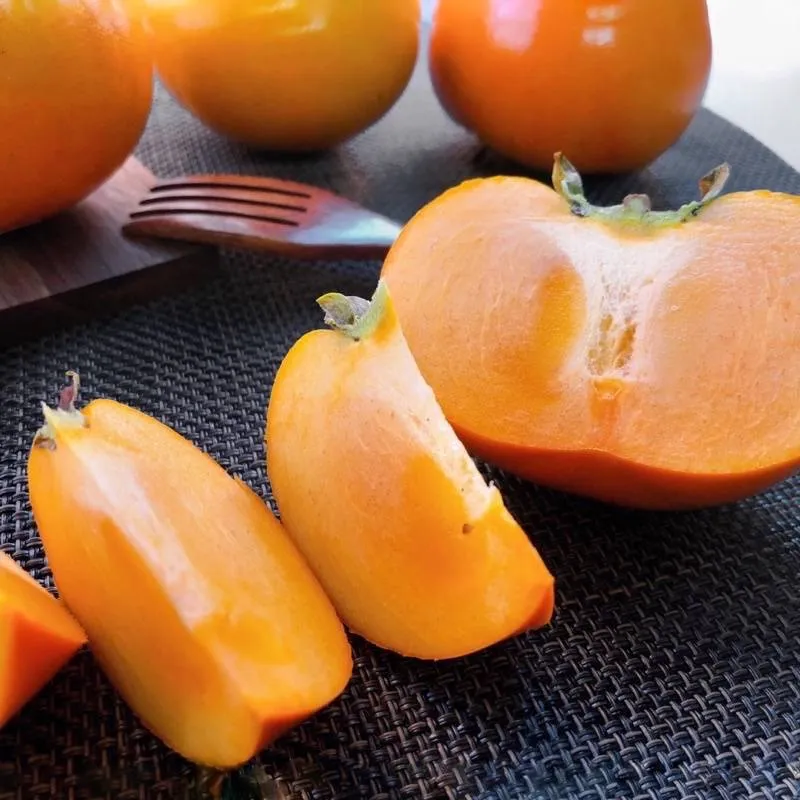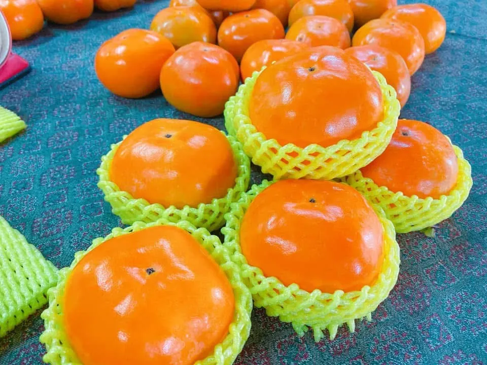 ●富有甜柿:產季約在11月中旬~12月中下旬。富有甜柿被譽為柿中之王,其特色是果肉細緻、多汁且甜度中等,成熟後不會殘留澀味,跟花御所相比,果型較大。肉質細緻,甜度又更高了一些。