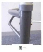 4.收納時,將腳踏板收起並固定於支撐桿上。為避免銅鈕掉入管内,必須同時按壓(圖一)的兩個解鎖銅鈕,然後即可折疊扶手架再收納。(圖四)
