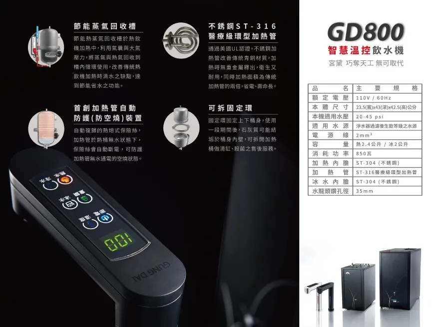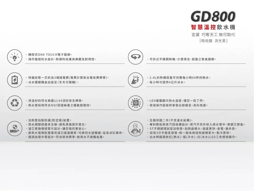 • GD800 雙溫智慧溫控飲水機