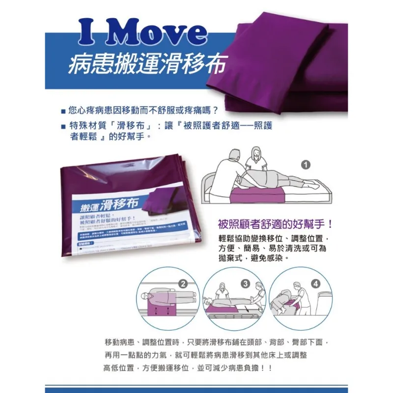 推薦使用移位滑布,就可以輕鬆省力地進行移位或變換位置,操作簡單方便、易清洗,是居家照護的好幫手。