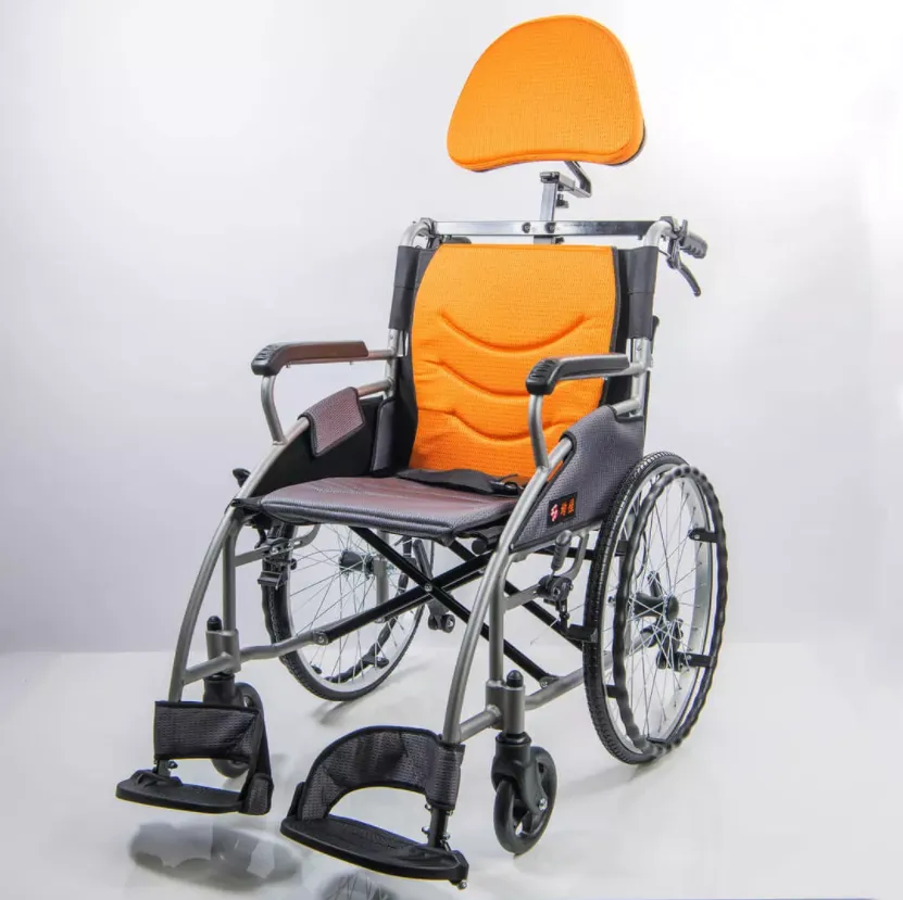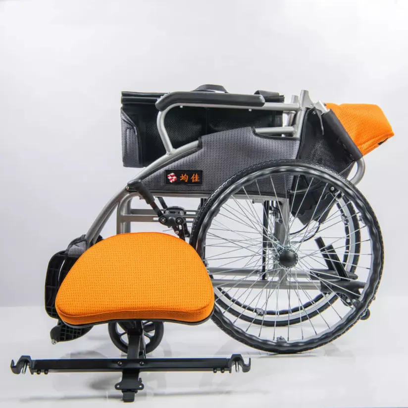1. 固定扶手,固定靠腳,背可折鋁合金輪椅。