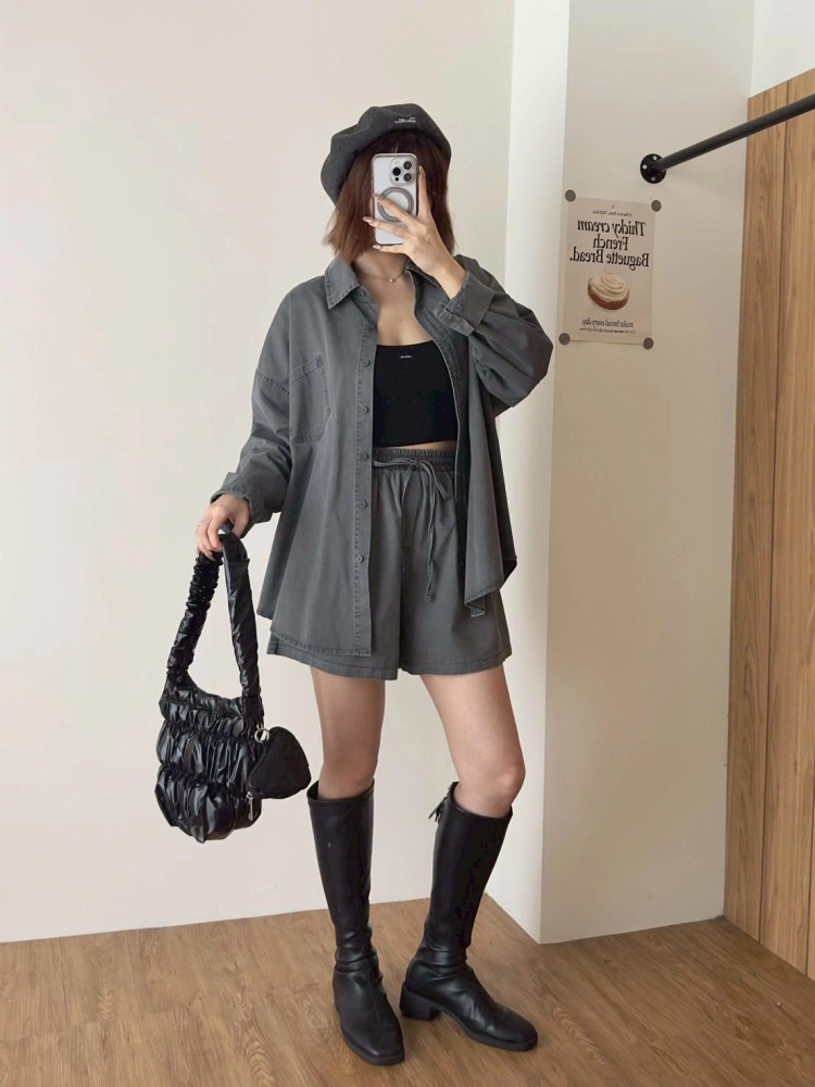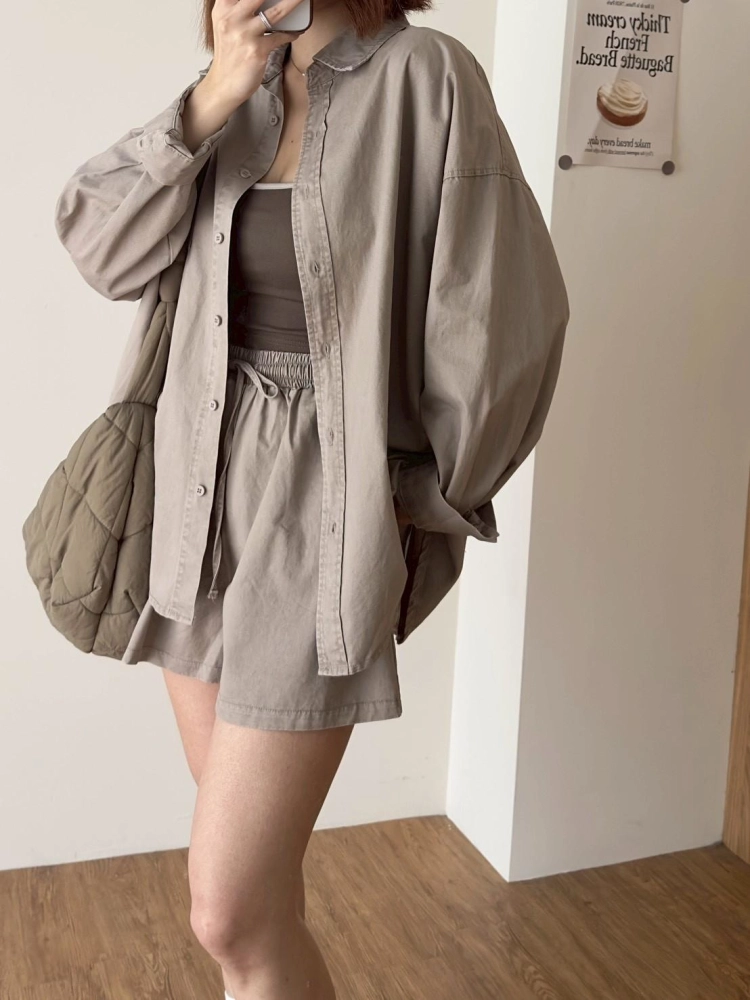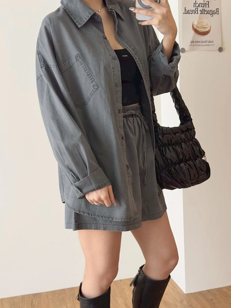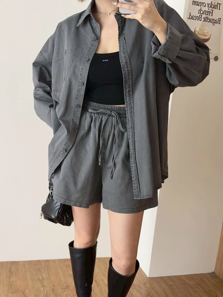 • 洗水牛仔襯衫後造型➕短褲套裝