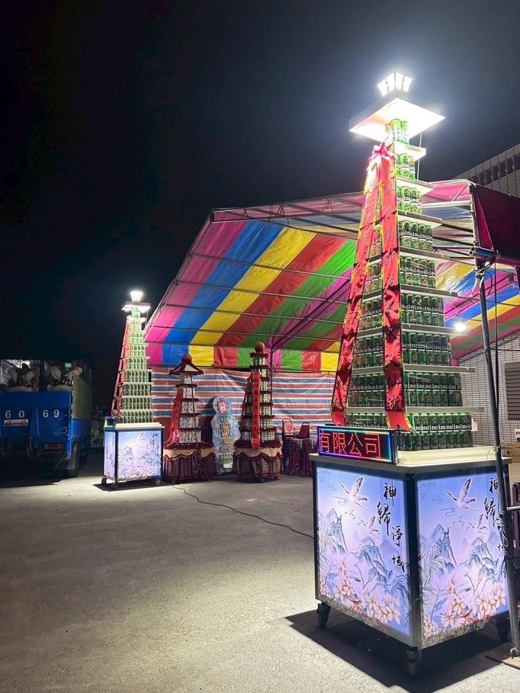 米塔、飲料塔、啤酒塔是台灣傳統喪禮常見的供品,主要功用有三:一是象徵圓滿、祈福平安與福報,向逝者表達誠摯的祝福;二是作為實際的慰問與支援,用來幫助喪家減輕生活負擔;三是延續互助精神,在早期農業社會,鄰里親友會以米糧、三牲、糕餅等祭祀用物資資助喪家,而米塔、罐頭塔是這種傳統的現代延續,將不易保存的祭祀品逐漸替代。