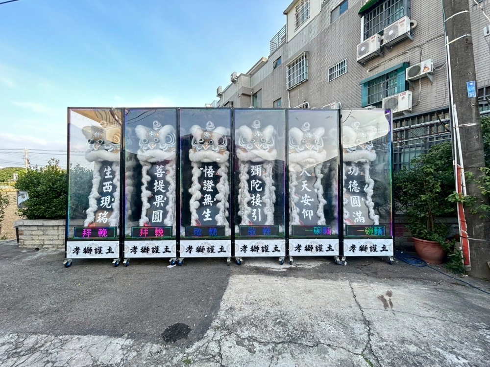 ● 大字幕機靈獅 : 超大字幕機顯示屏,告別儀式通常為白天進行,提詞不怕看不見,透過大字幕顯示屏可更為會場增添莊嚴且隆重的儀式感。