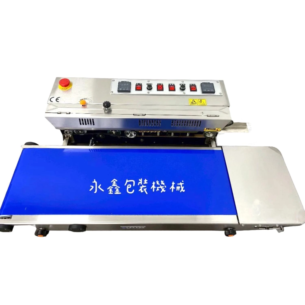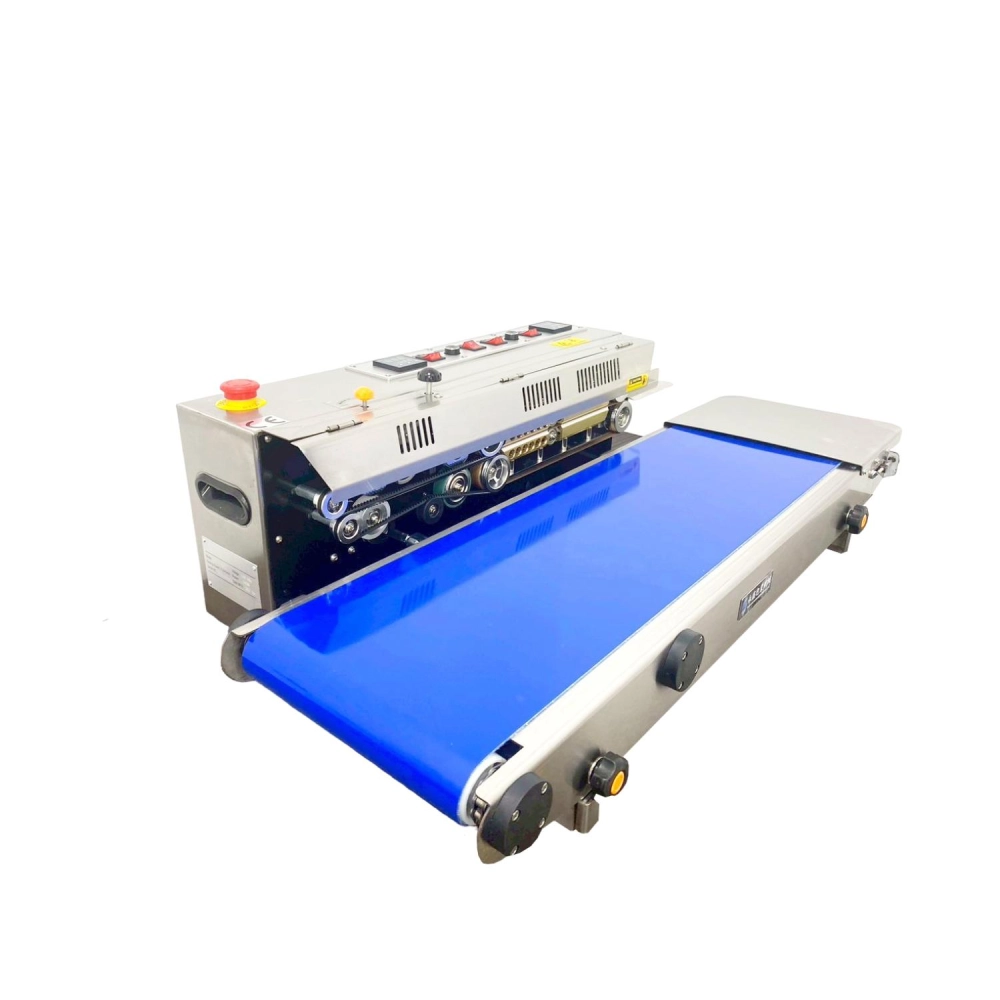 機器:連續封口機-加寬版(含印日期) 機器材質:不鏽鋼 電壓: 110V 60HZ 耗用功率:650W 機器尺寸:540(L)*1000(W)*300(H)