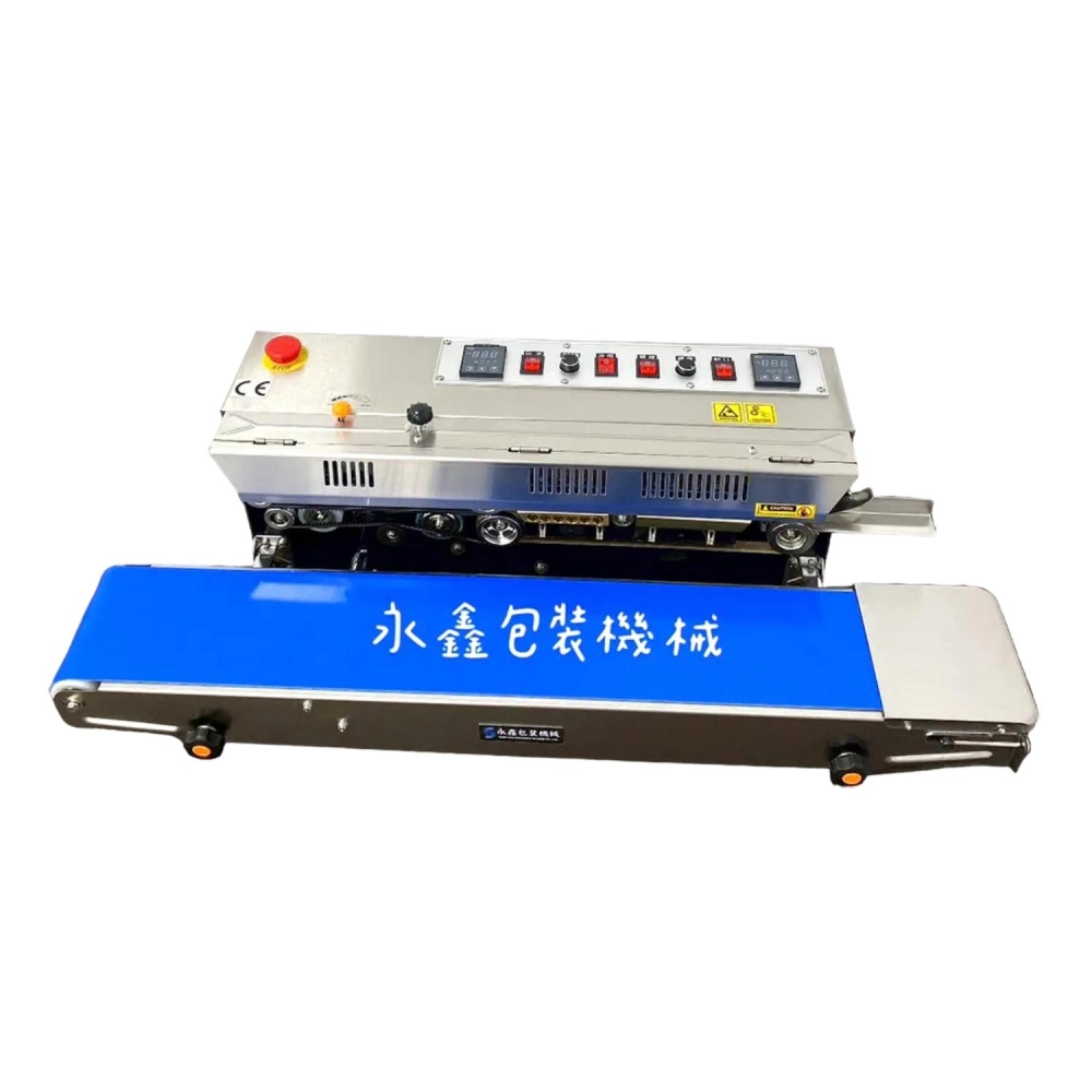 機器:連續封口機-標準版(含印日期) 機器材質:不鏽鋼 電壓: 110V 60HZ 耗用功率:650W 機器尺寸:410(L)*930(W)*300(H)