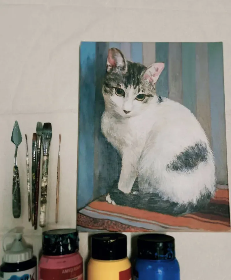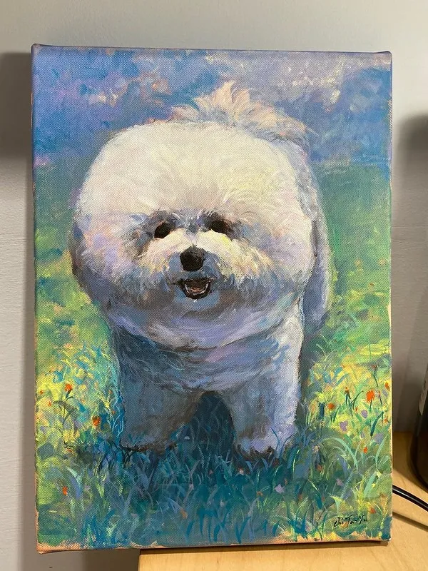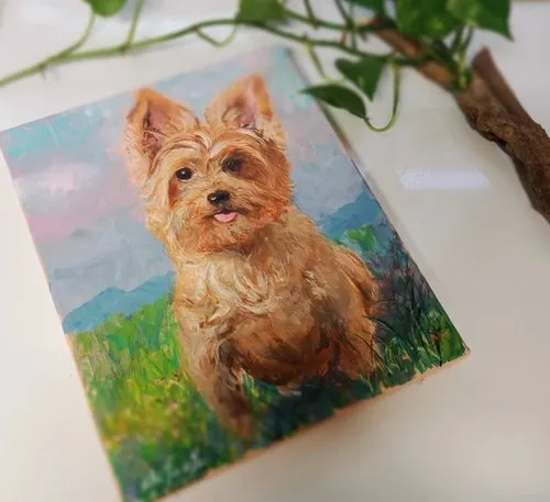 如選畫布寵物畫定製,為壓克力顏料喔!