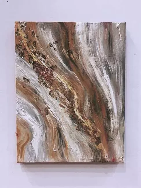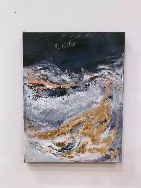 ◆結合刮刀等不同繪畫工具的使用,享受顏料堆疊及金箔撕貼創作療癒過程