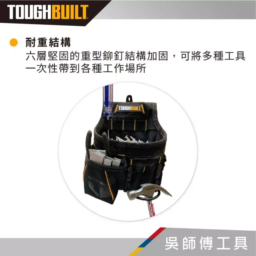 ●含12個口袋和環,包括鐵鎚架、登山扣