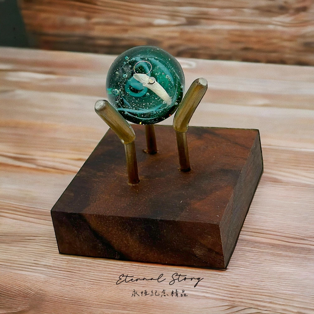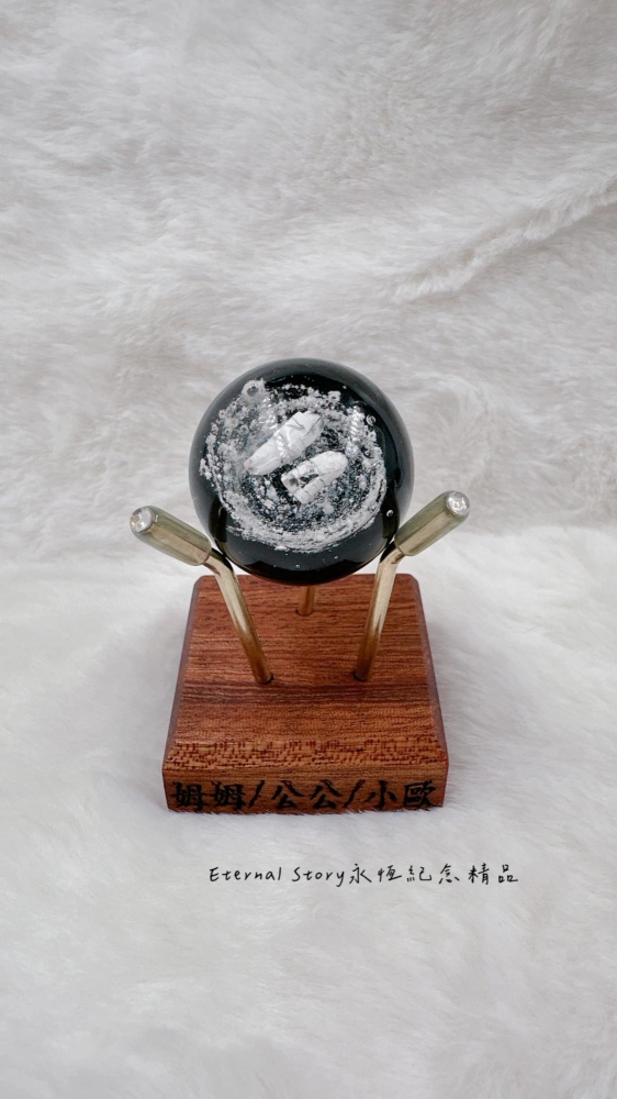 星空球中的星漩可選擇以骨灰呈現或交由師傅加入特殊色琉璃進行創作完成屬於家裡寶貝獨一無二的回憶精品