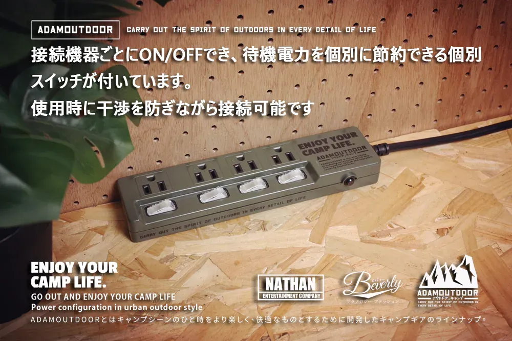• ADAMOUTDOOR|家用款4切4 延長線1.8M 沙漠色