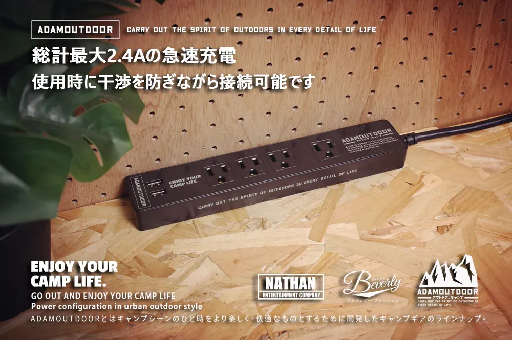 • ADAMOUTDOOR|家用款1切4+USB 延長線1.8M 軍綠色