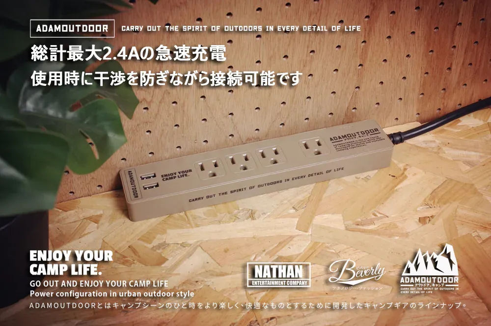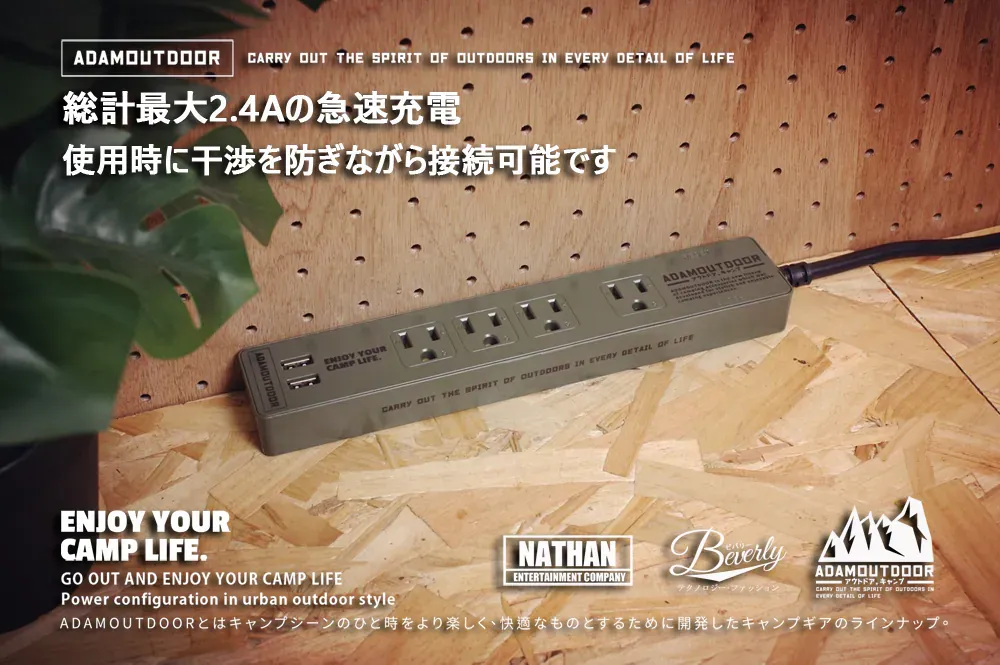 • ADAMOUTDOOR|家用款1切4+USB 延長線1.8M 黑色