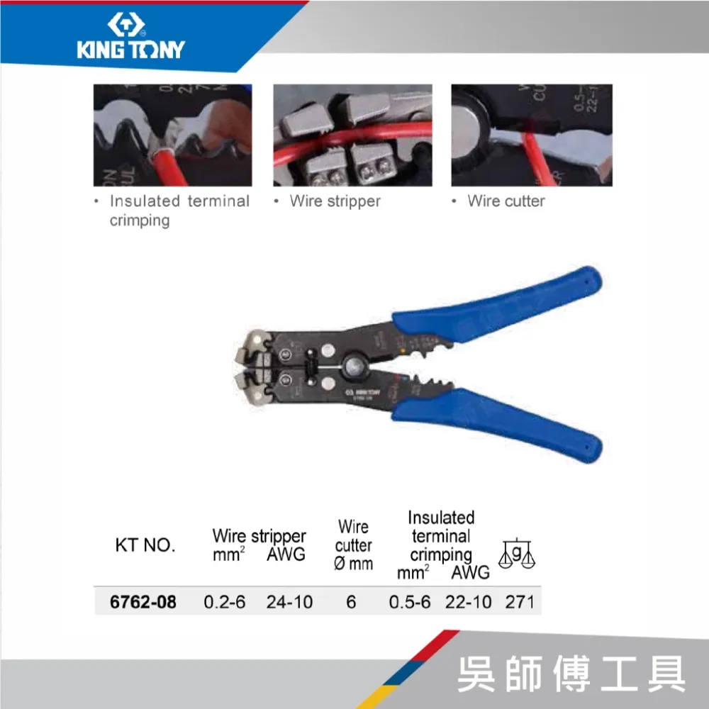 【6762-08】專業用電線剝線鉗(附壓著功能及切斷線)
