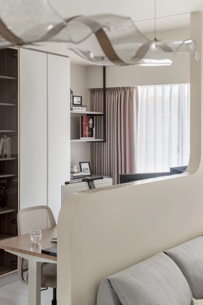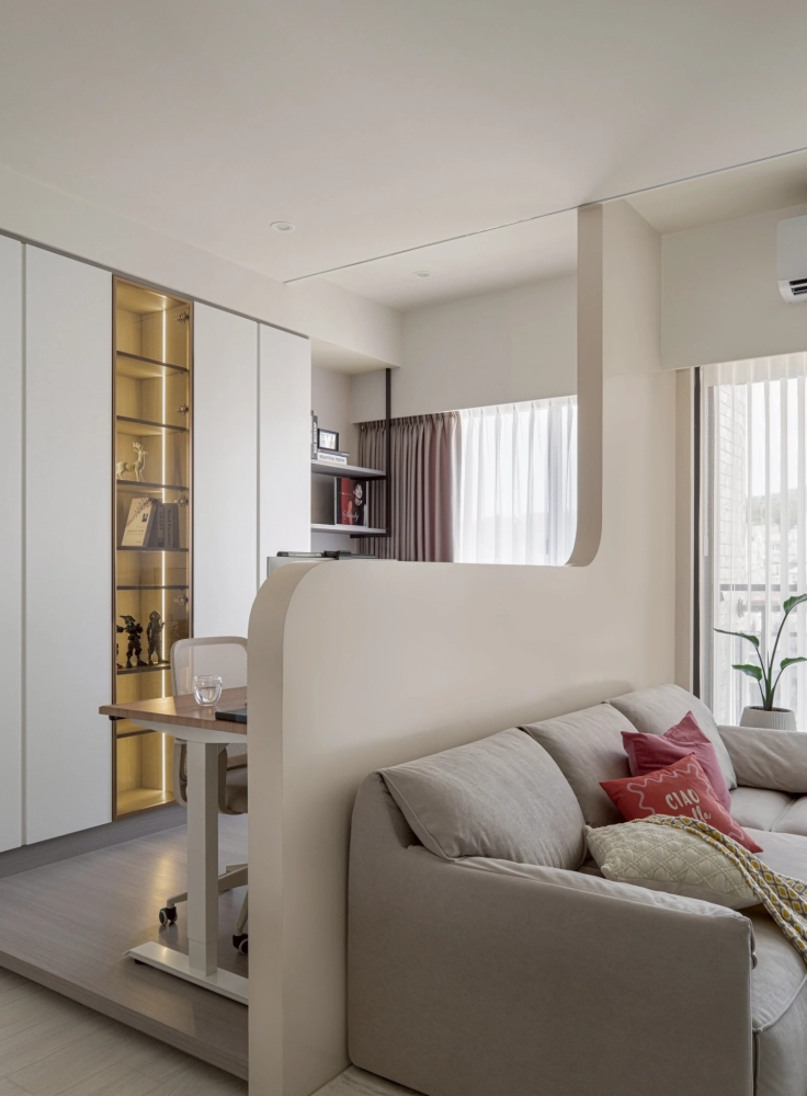 ✨客廳與書房以輕隔屏分區,保有獨立又不失通透感