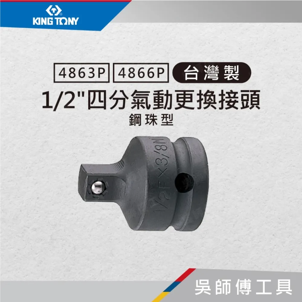 【4863P】1/2"四分轉3/8"三分 氣動更換接頭(鋼珠型)
