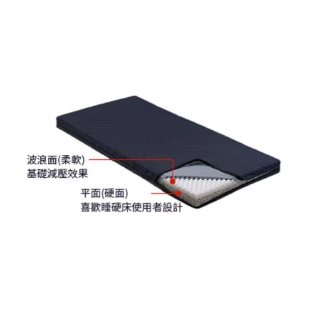 厚款: 波浪形(蛋形)高密度泡棉(稍軟)、一層是平面脆棉(稍硬)