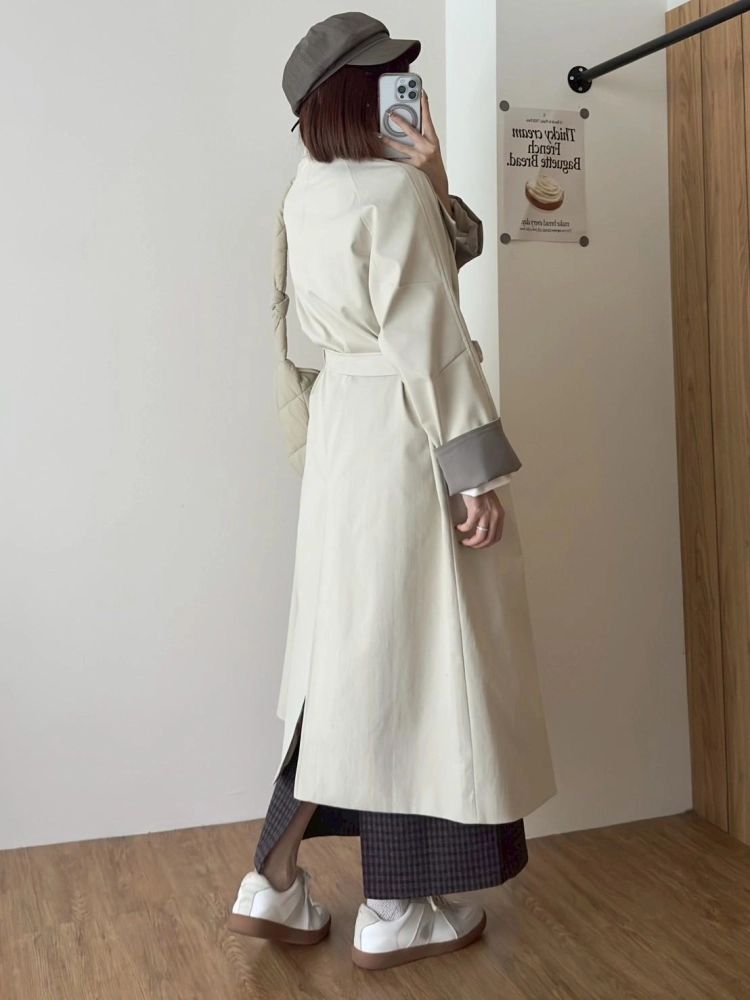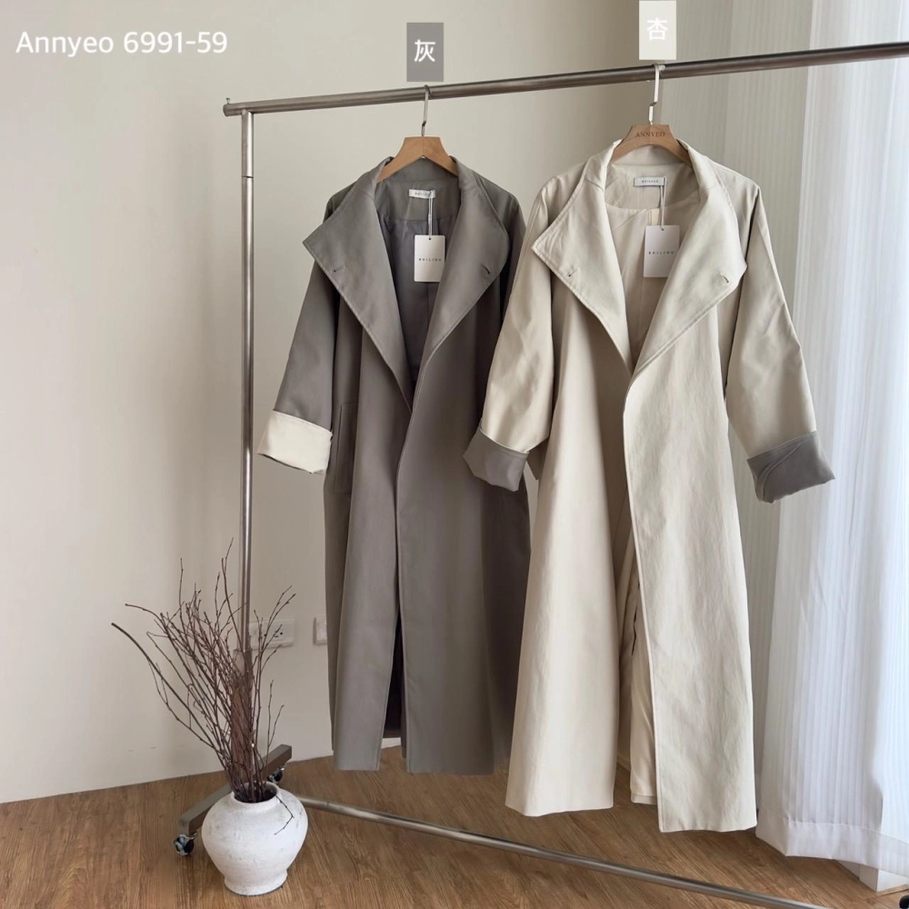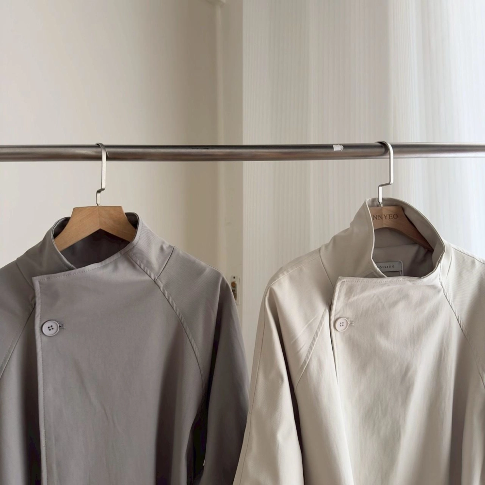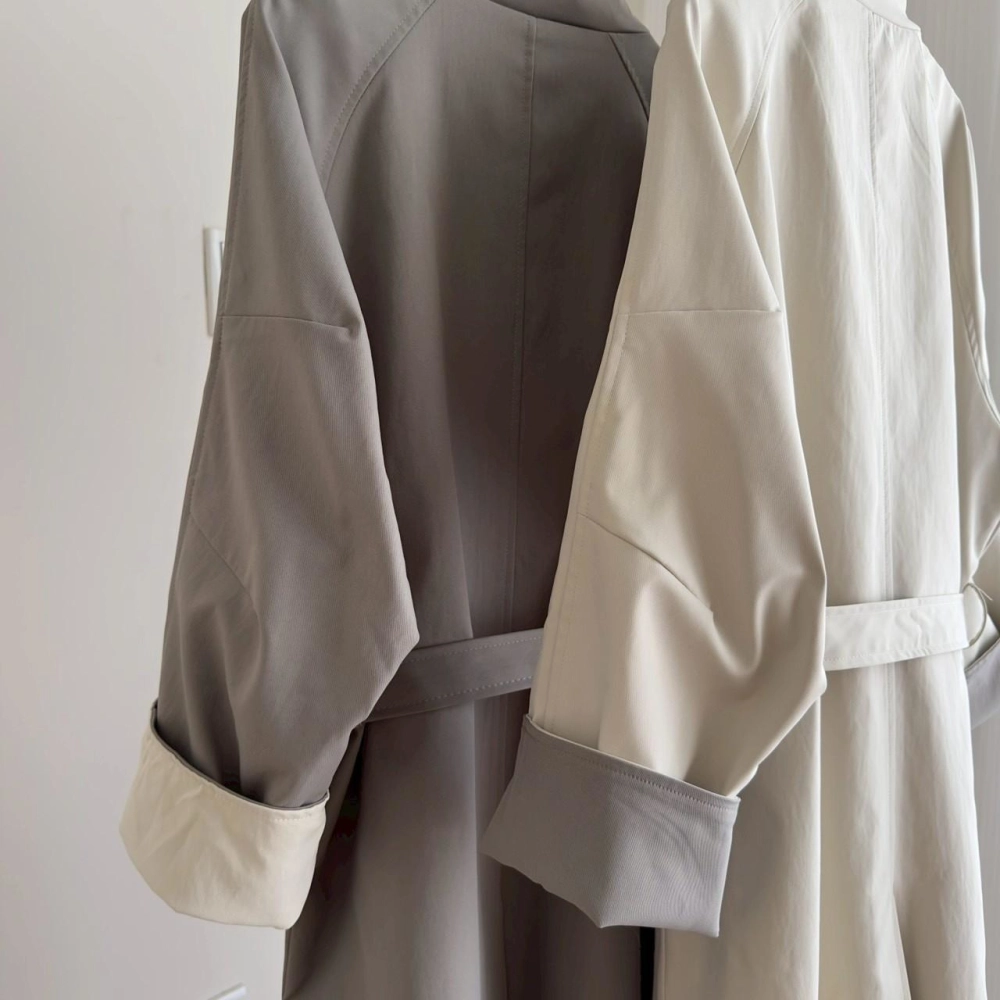 • 立領長風衣袖反折撞色外套