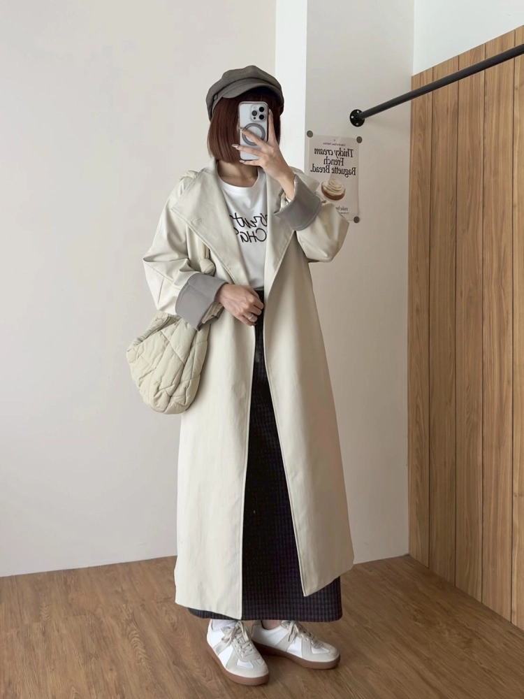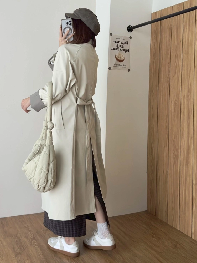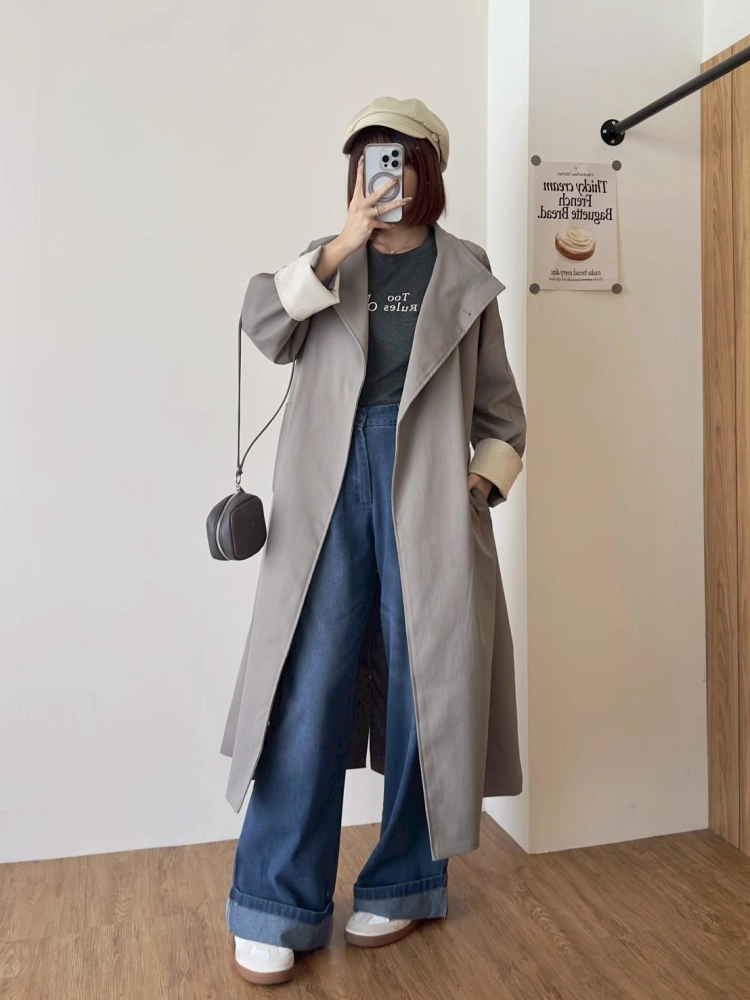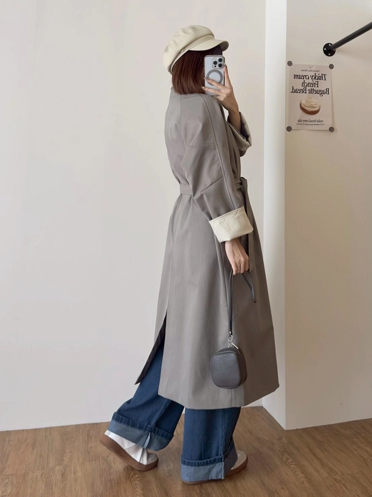 • 立領長風衣袖反折撞色外套