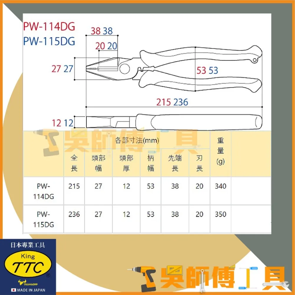 【PW-115DG】萬能強力鋼絲鉗 9" 225mm