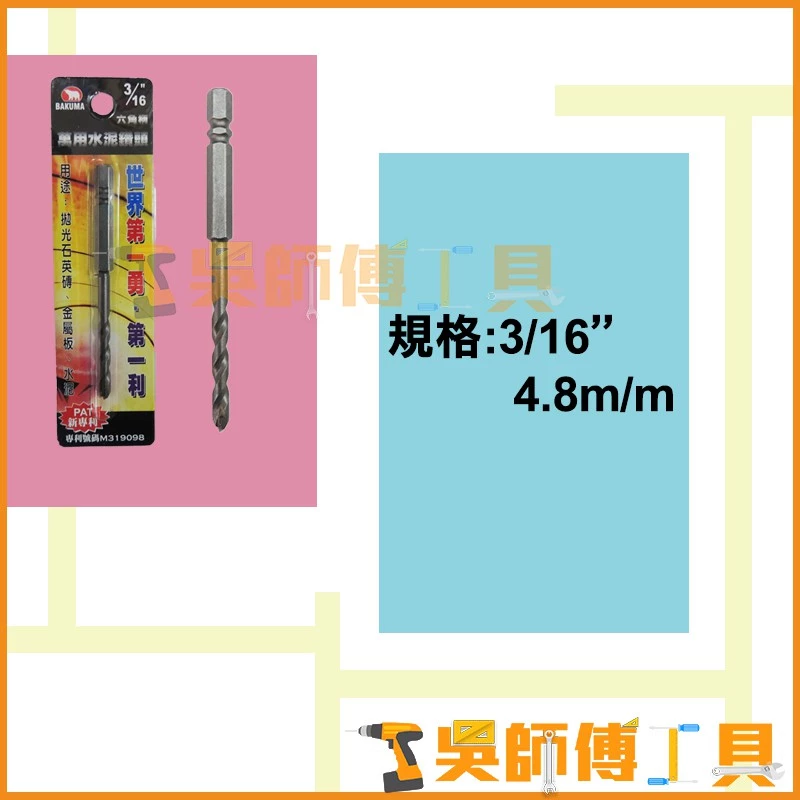 商品熊牌 BAKUMA 1/8吋 六角柄萬用水泥鑽頭 3.2m/m