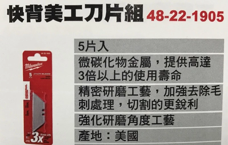 【48-22-1905】快背美工刀專用刀片(5片一卡)