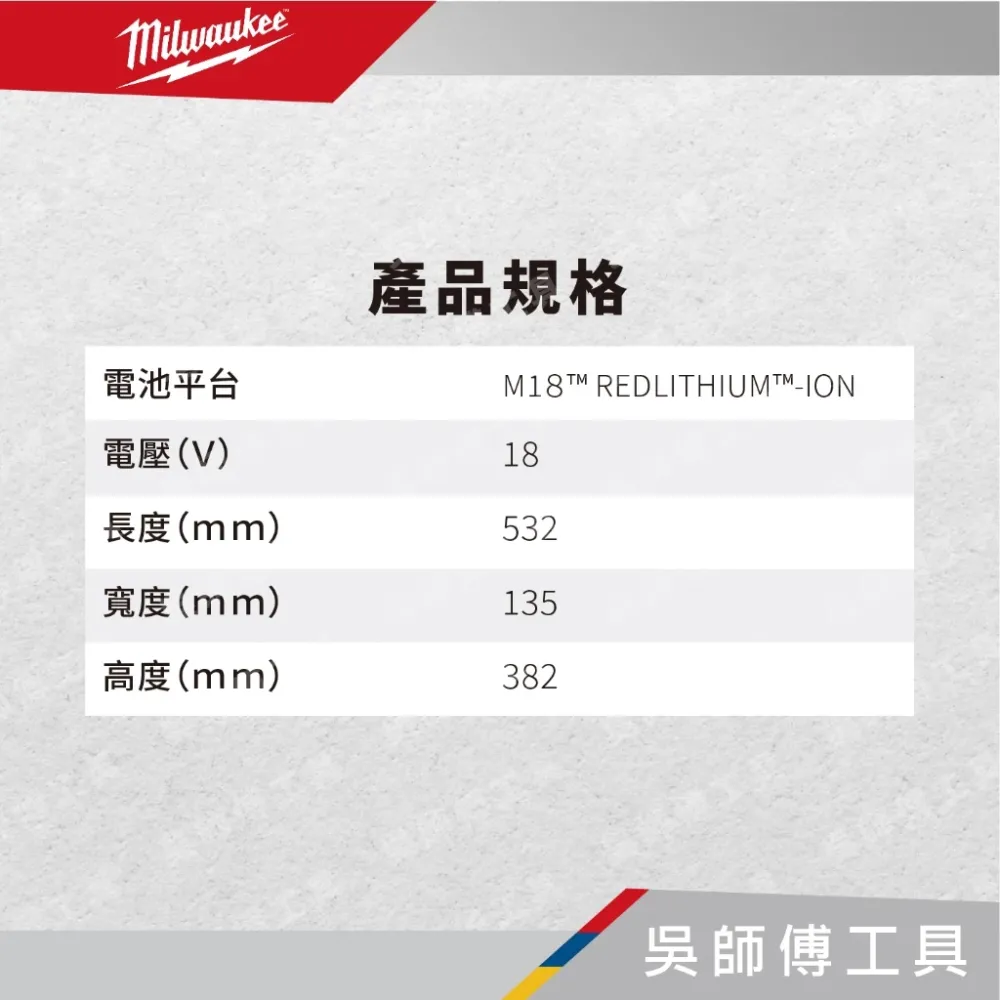 電池類型:M18™ REDLITHIUM™-ION 紅鋰電池