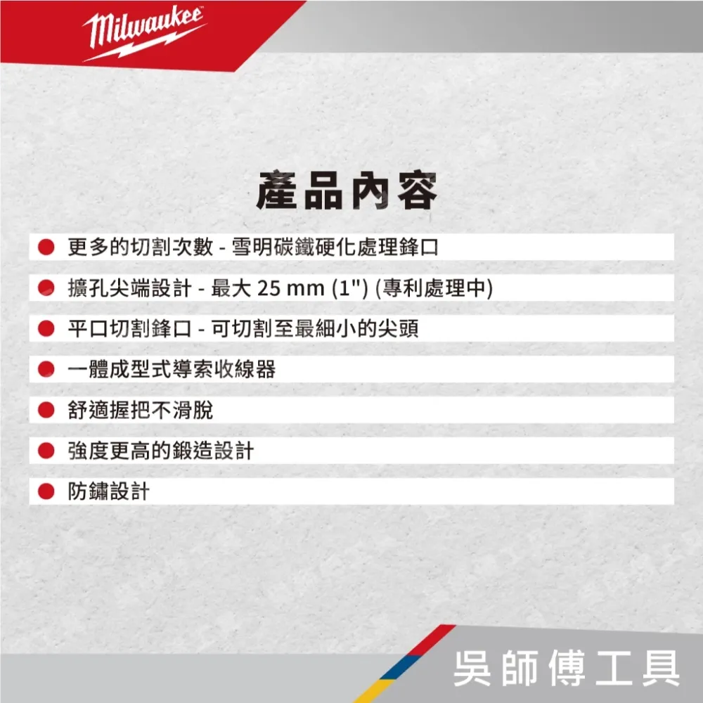 ●擴孔尖端設計 - 最大 25 mm (1") (專利處理中)