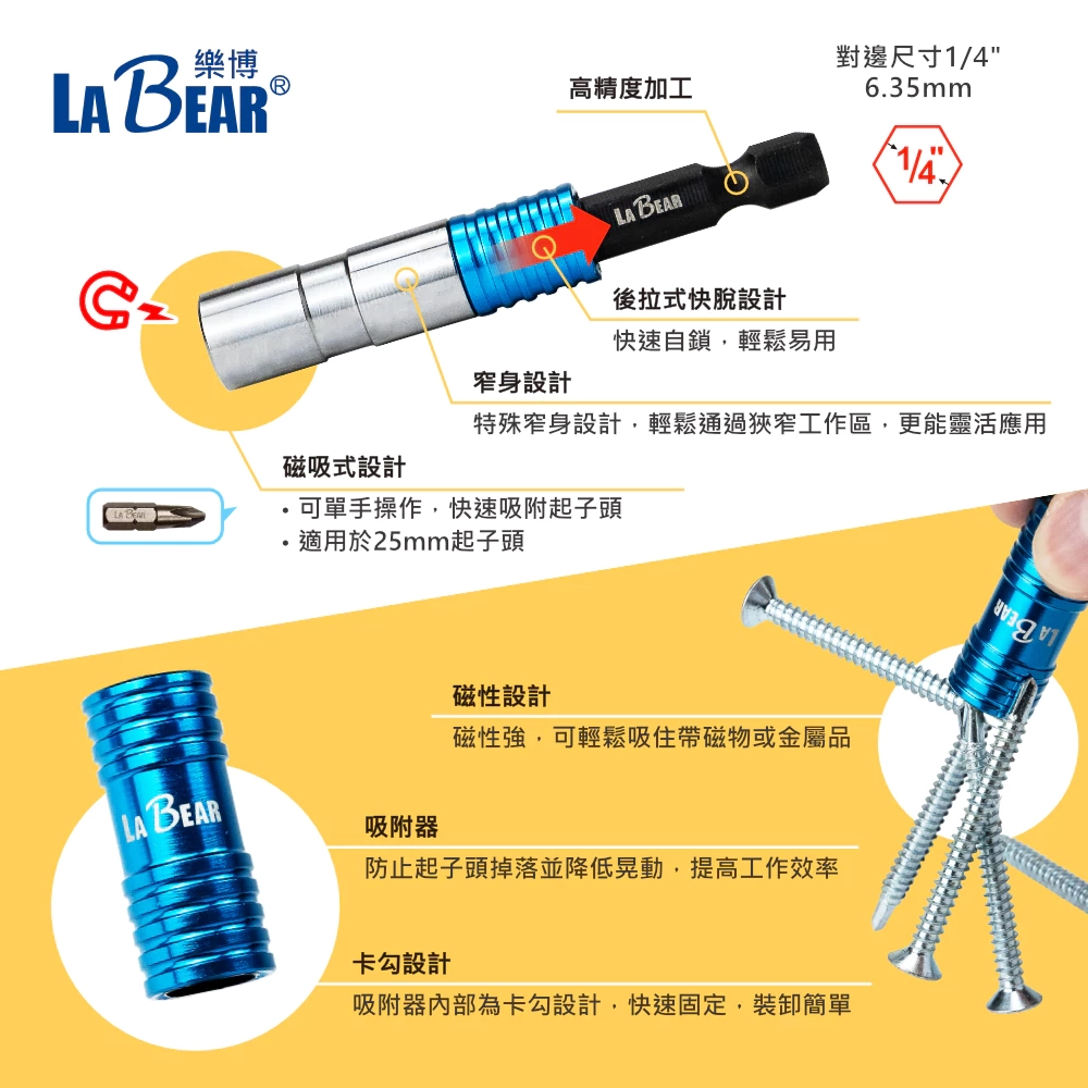 【LaBear】1/4" 66L/150L 特窄快脫起子頭磁性接桿