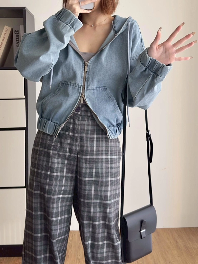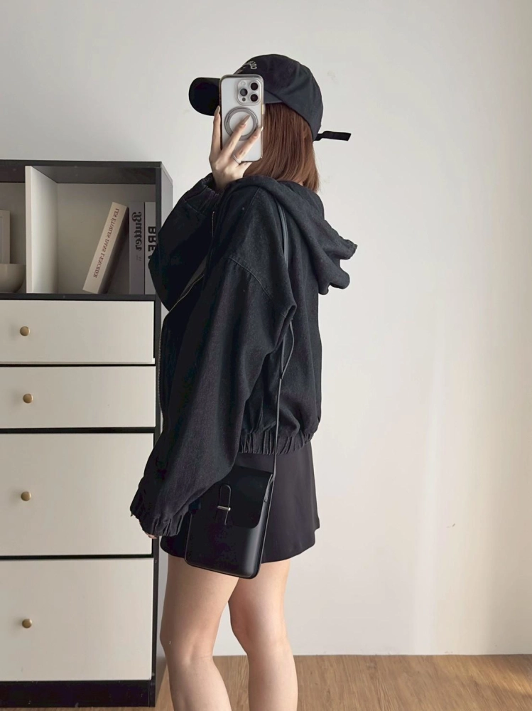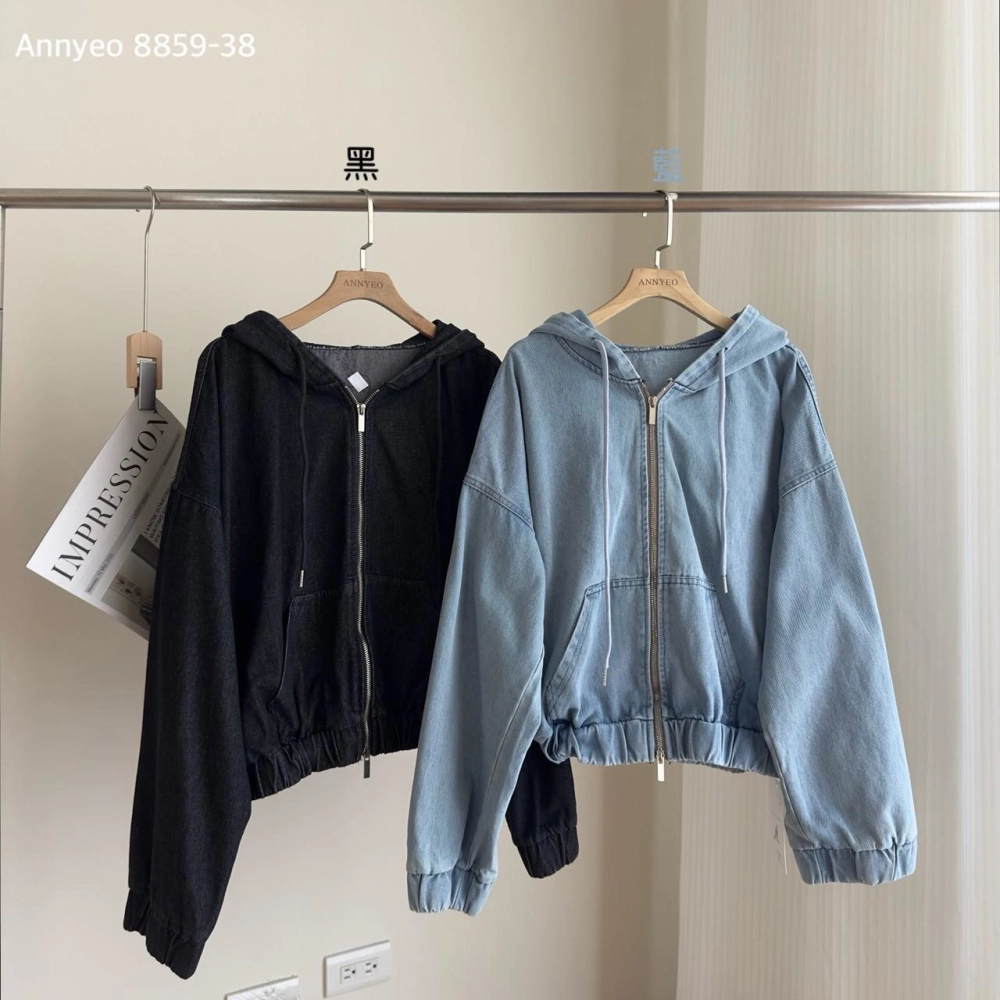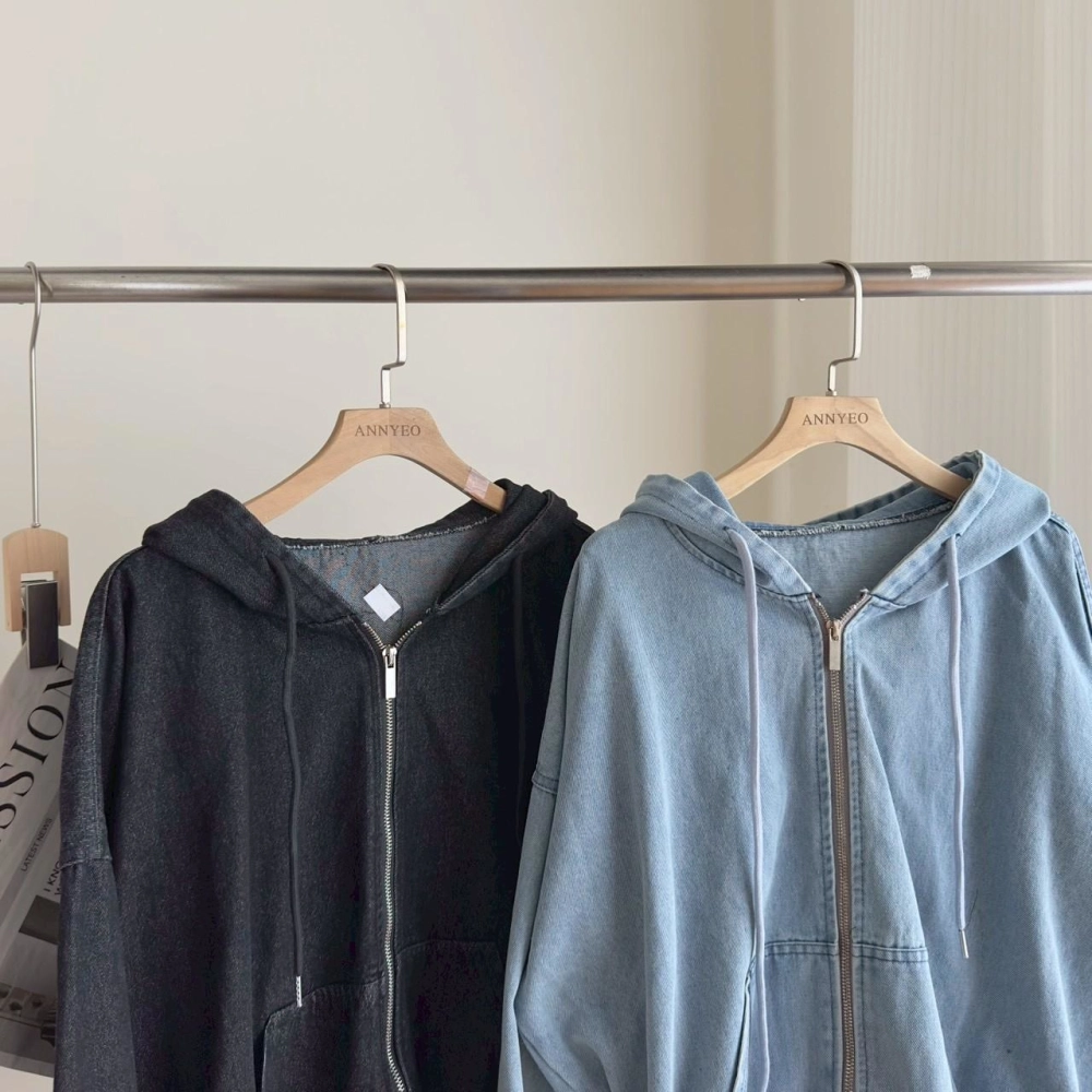 • 牛仔連帽拉鍊外套