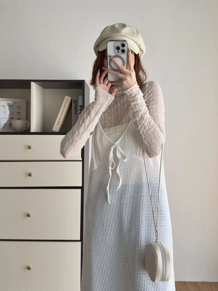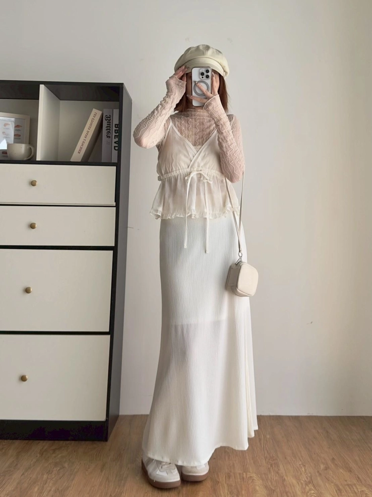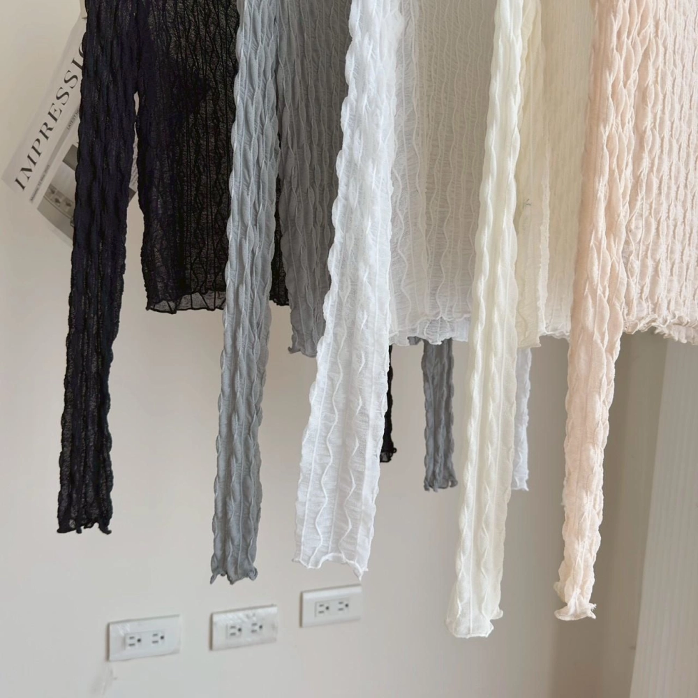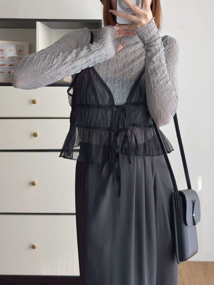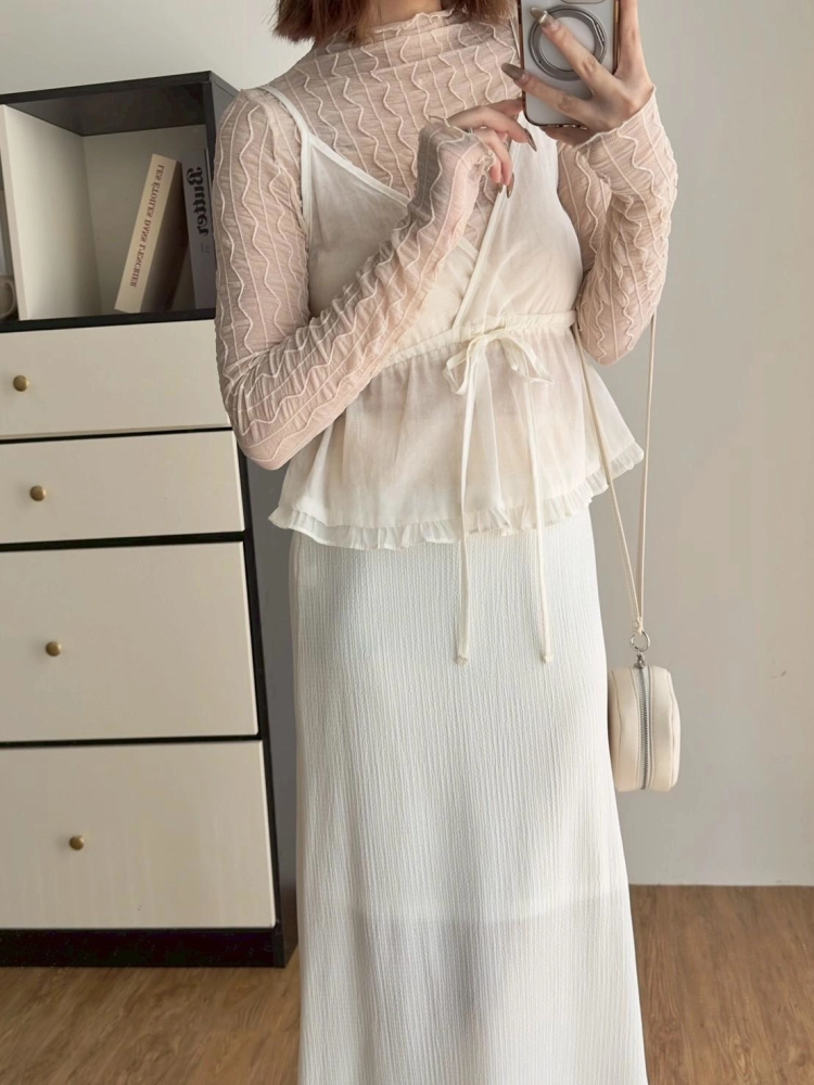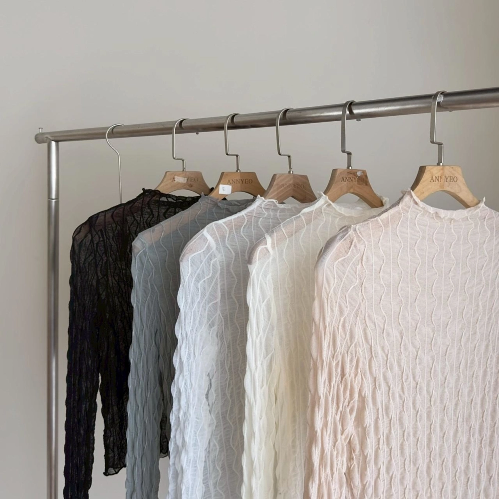 • 小立領木耳邊蕾絲波浪打底上衣